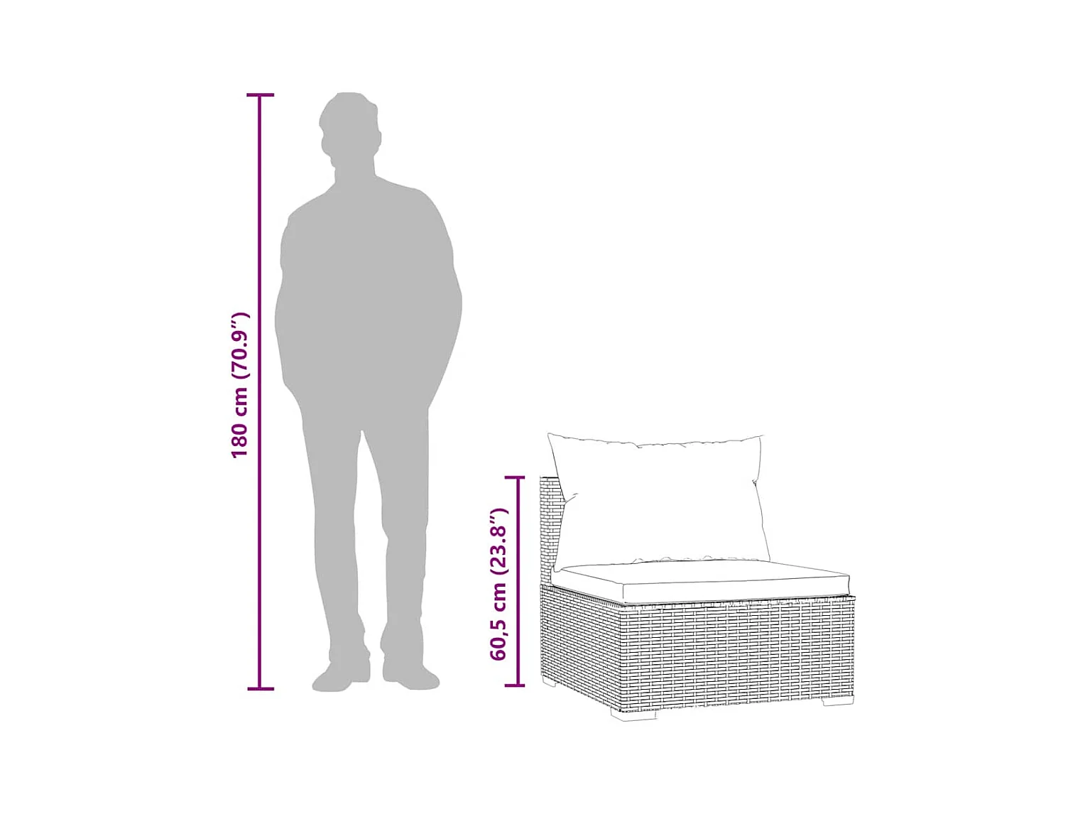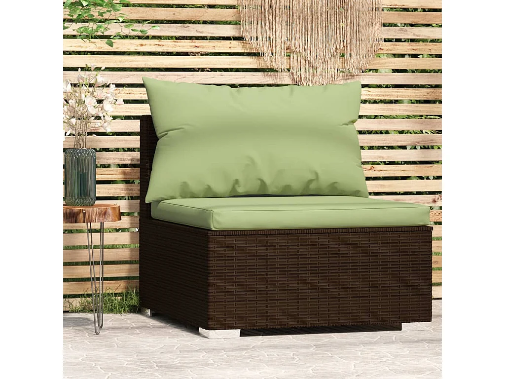 Canapé central de jardin avec coussins Marron Résine tressée