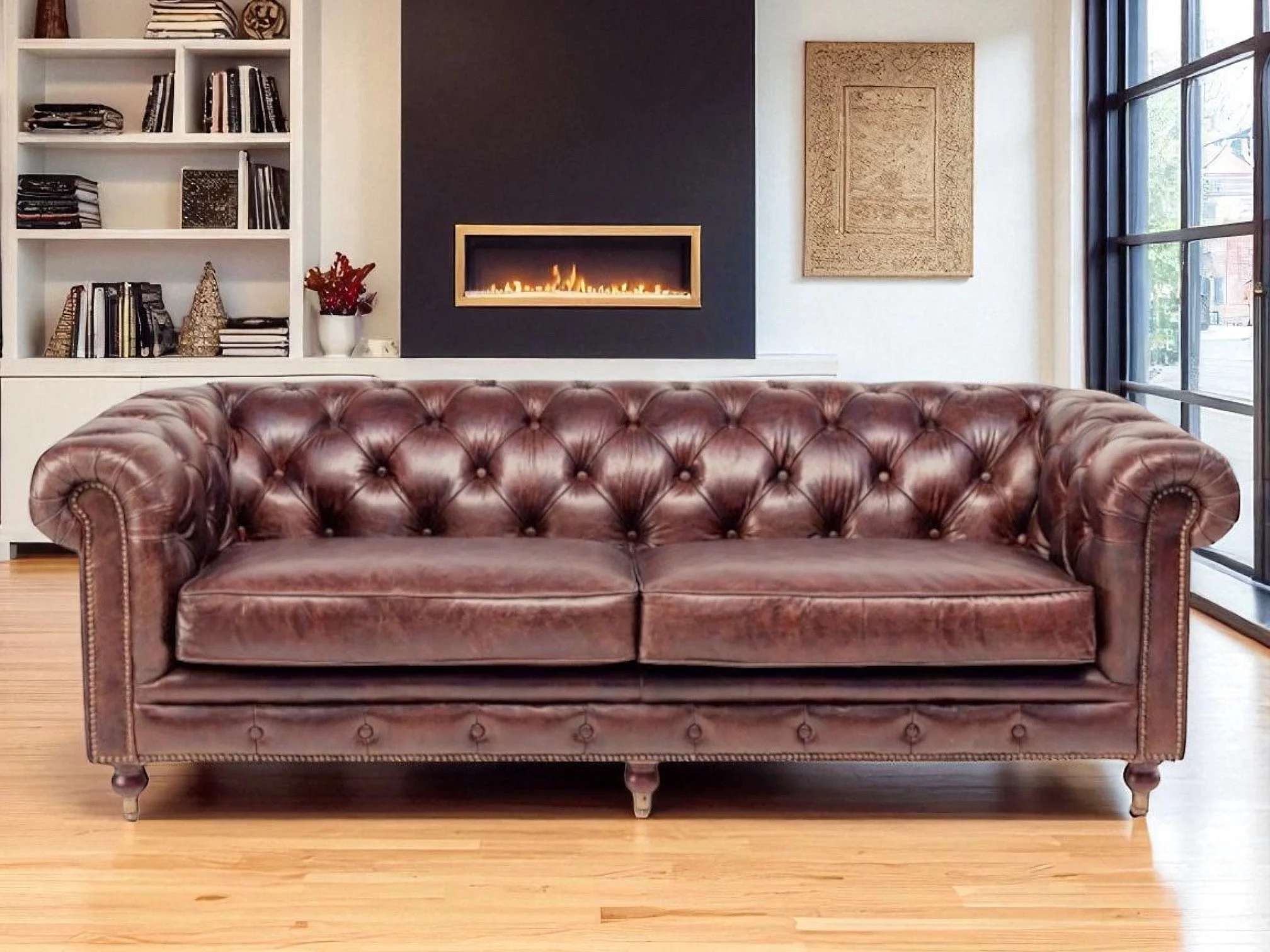 Canapé Chesterfield cuir brun – modèle The First