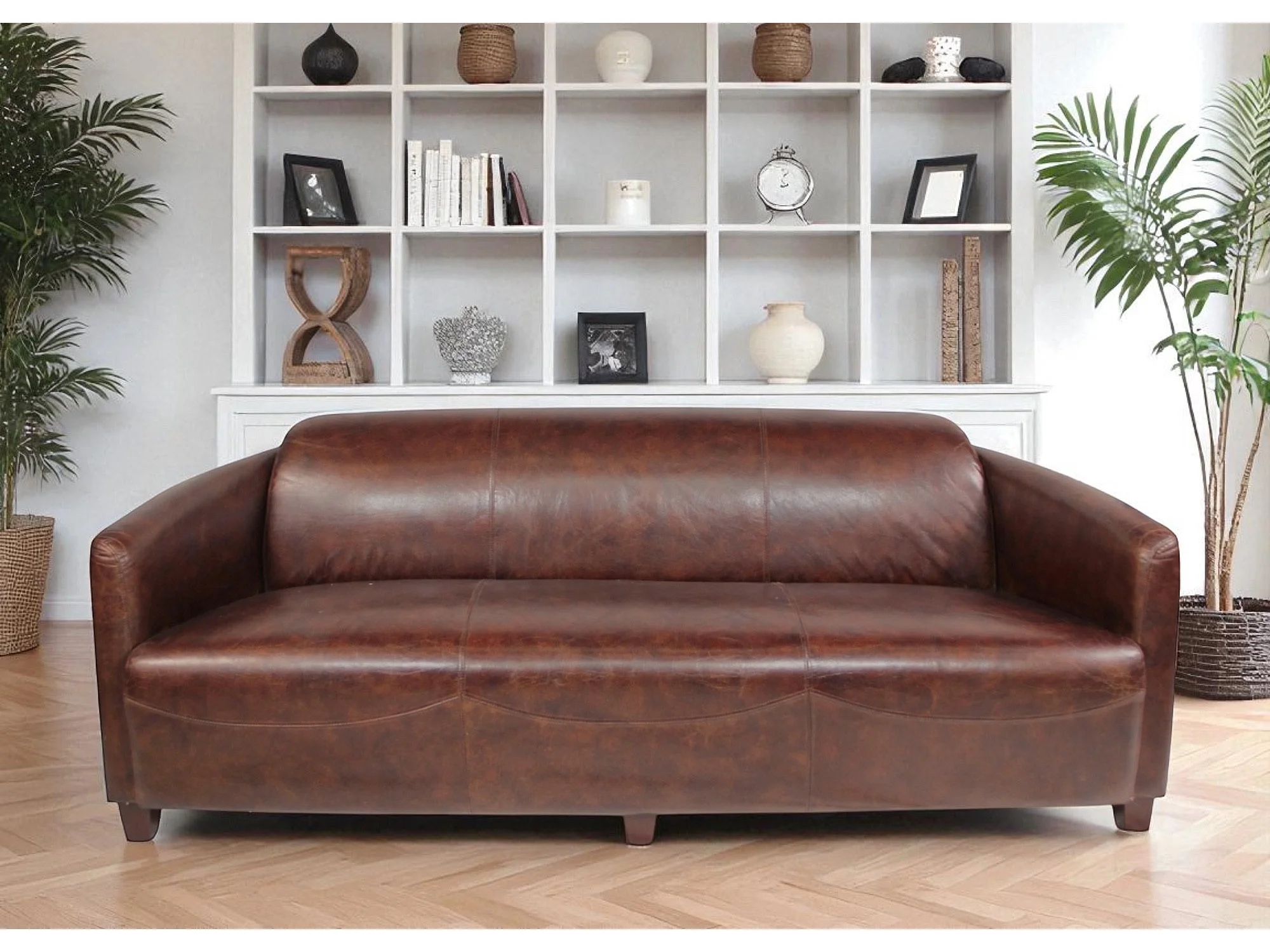 Canapé club cuir marron 3 places patiné – collection Andrew