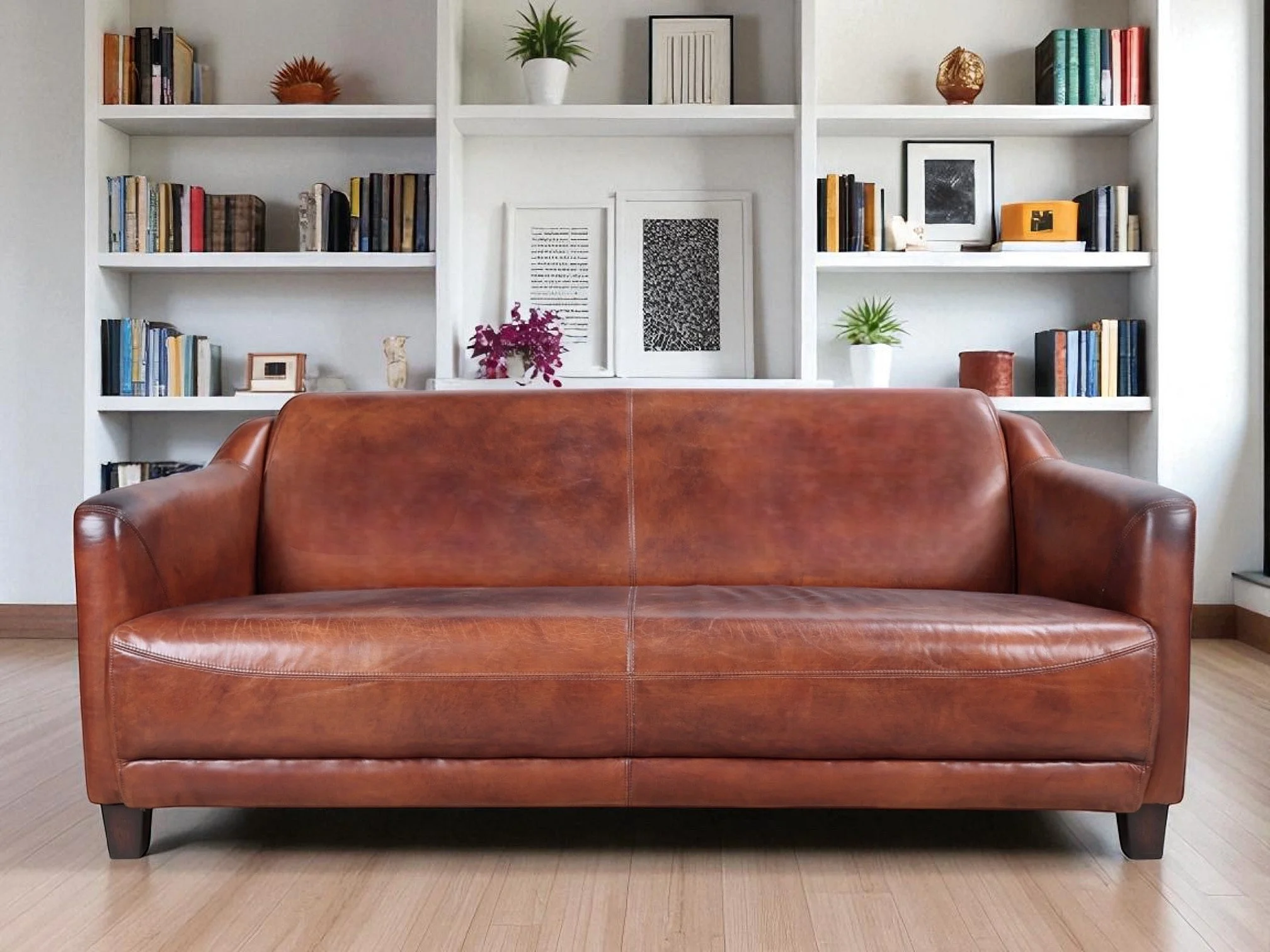 Canapé club cuir marron 3 places vieilli – collection Alfred