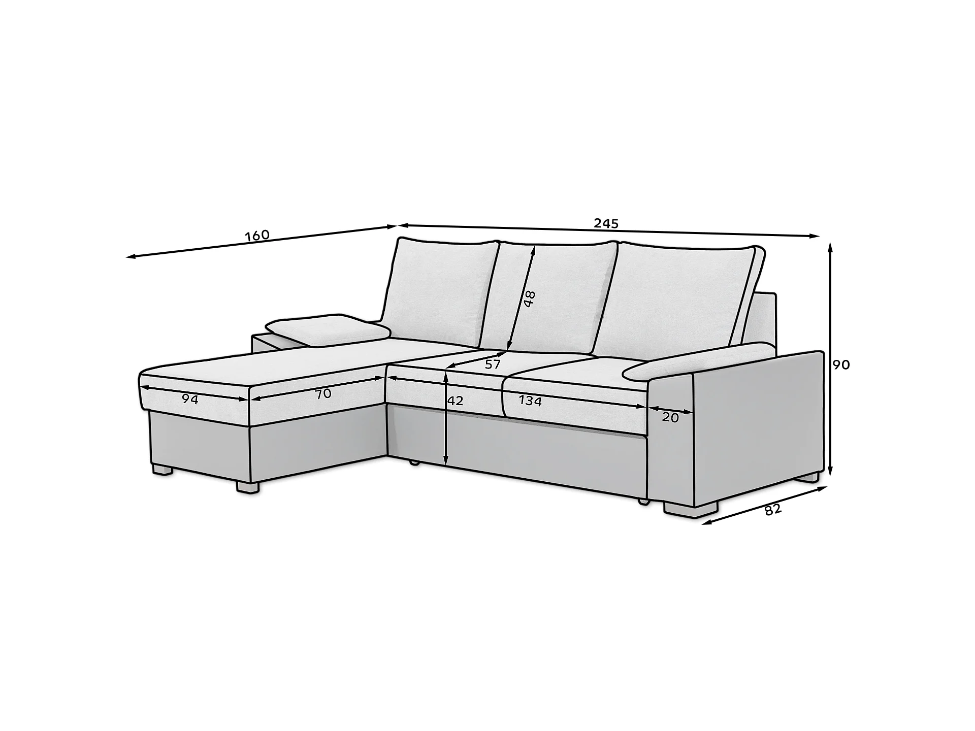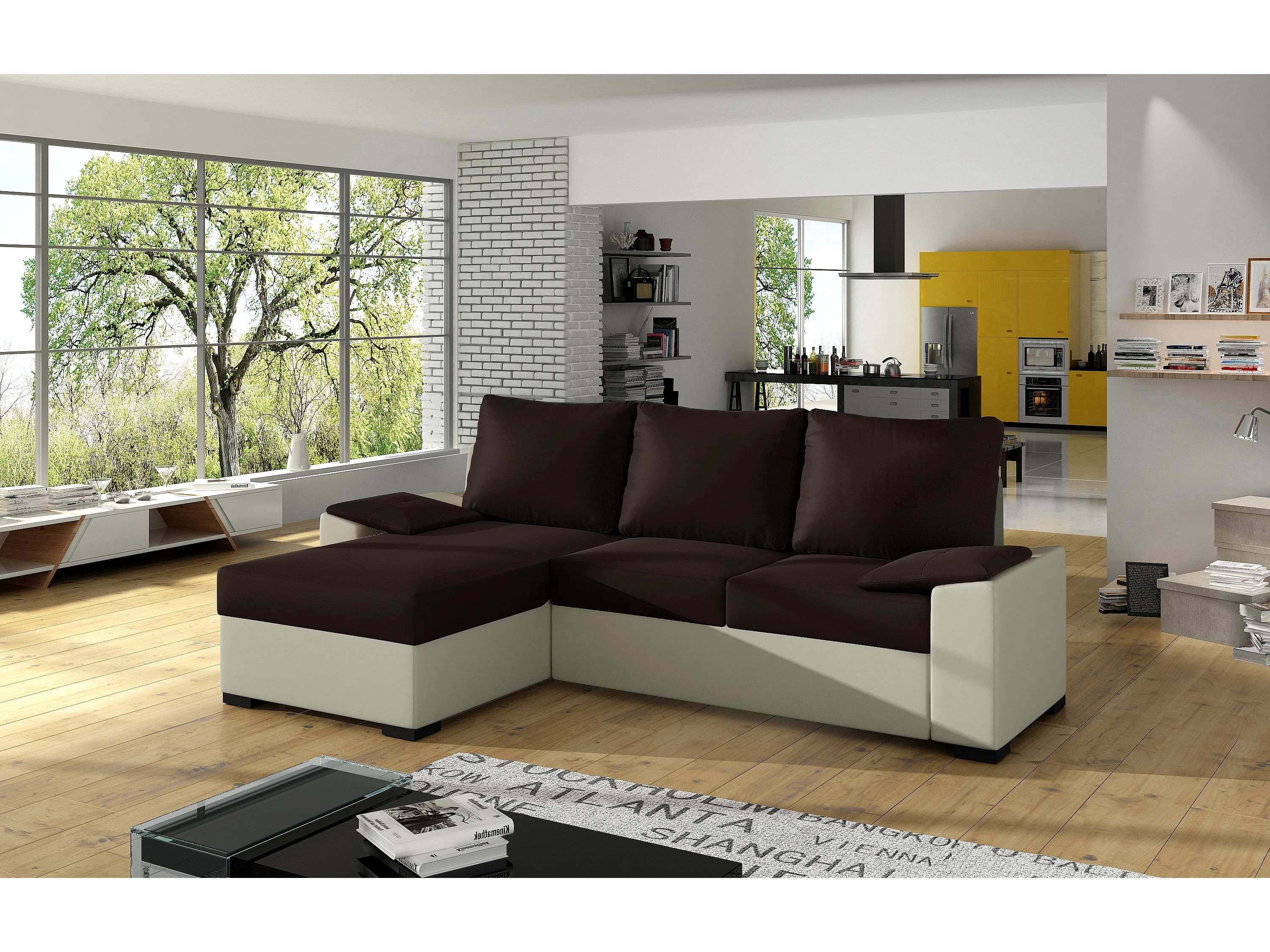 Canapé Corner Cadro L/Tissu-Marron