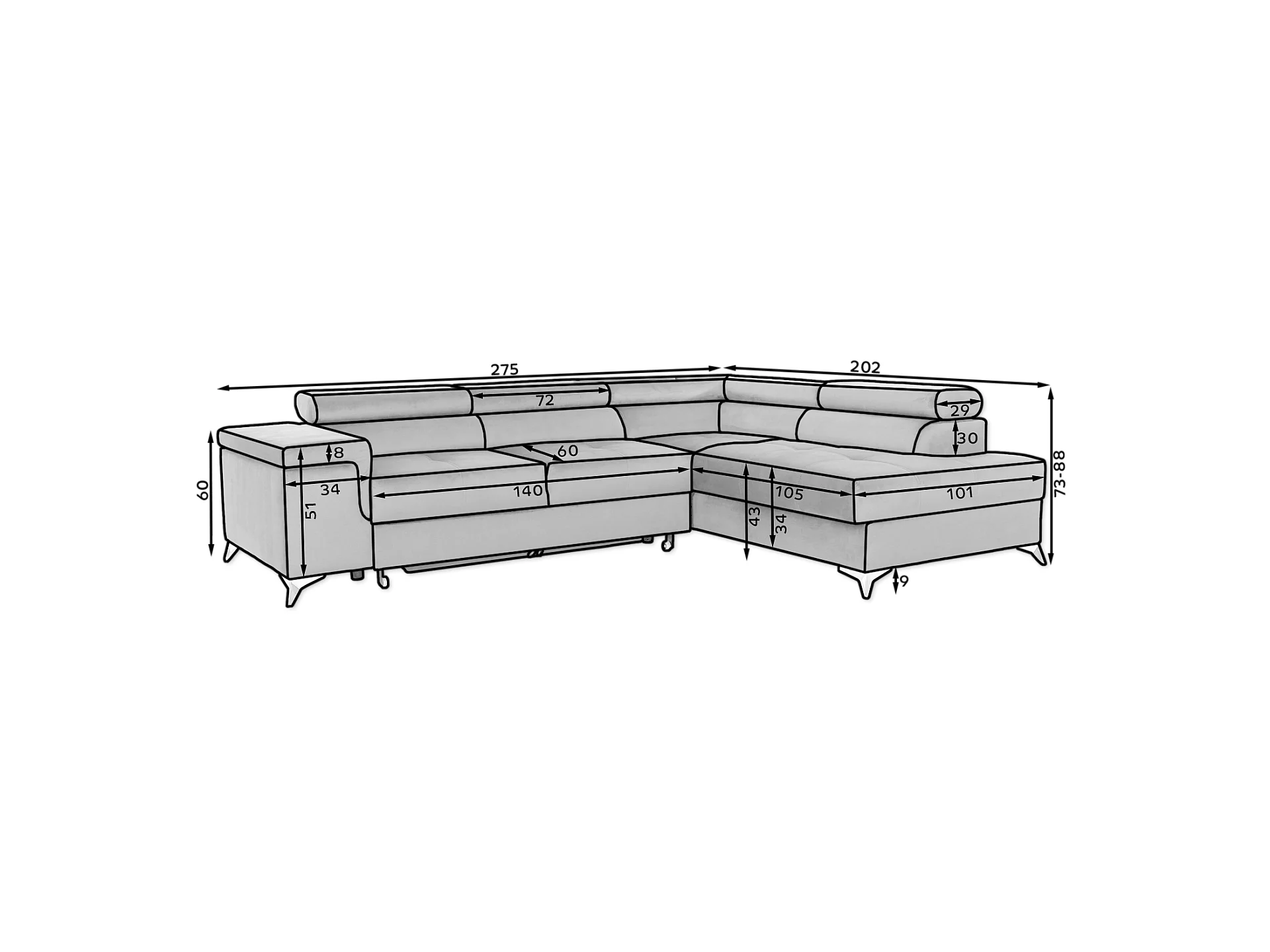 Canapé Corner Genova L / En Stock/Tissu-Gris