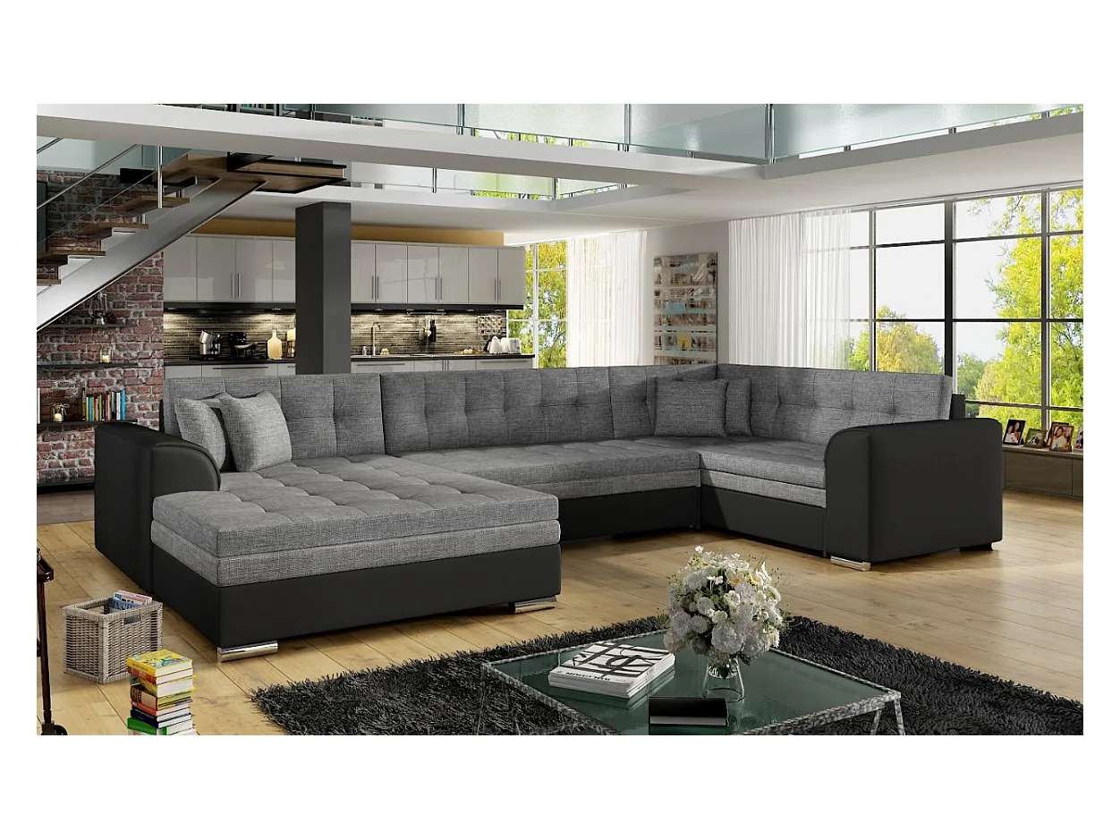 Canapé Corner Olio UL/Tissu/Anthracite&Noir/En stock
