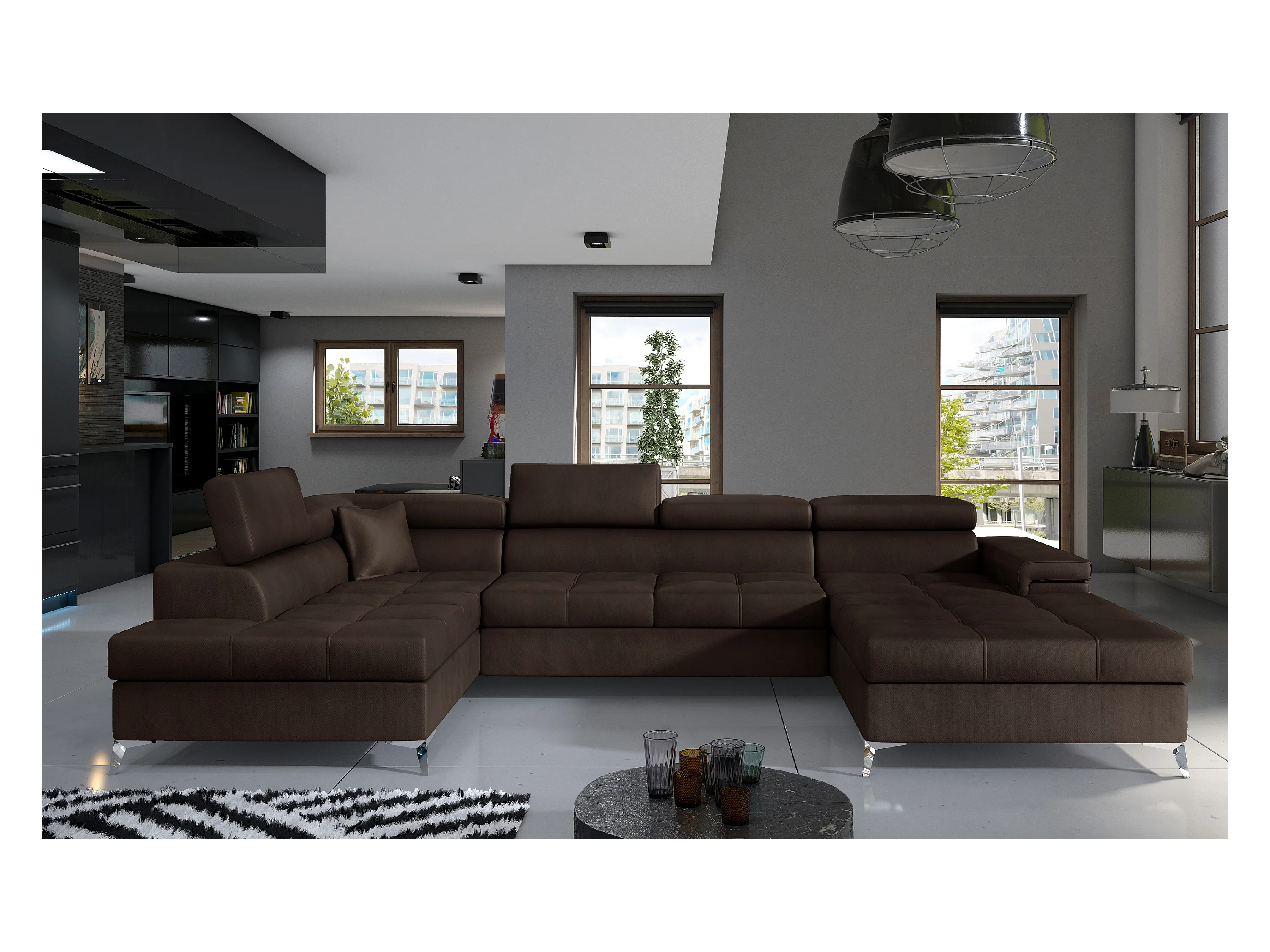 Canapé Corner Perano UL/Tissu-Marron