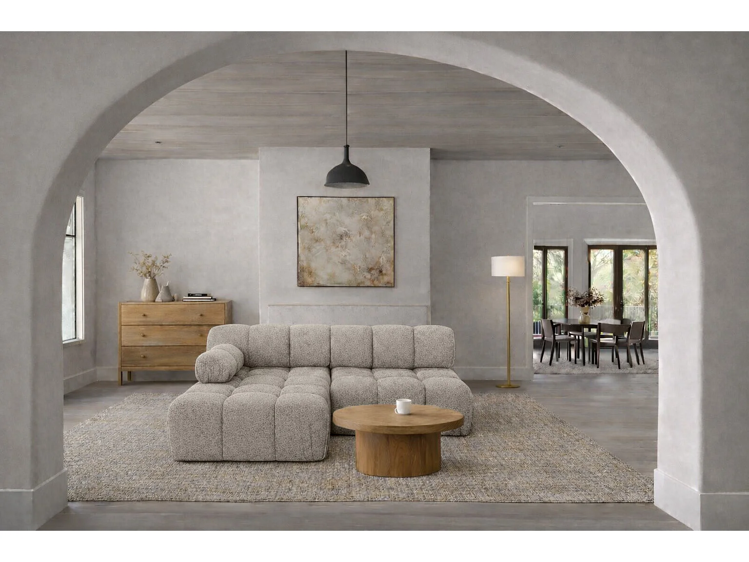Canapé d’angle en L Mini II modulaire, tissu bouclé Abriamo, Beige, Gauche, Selia