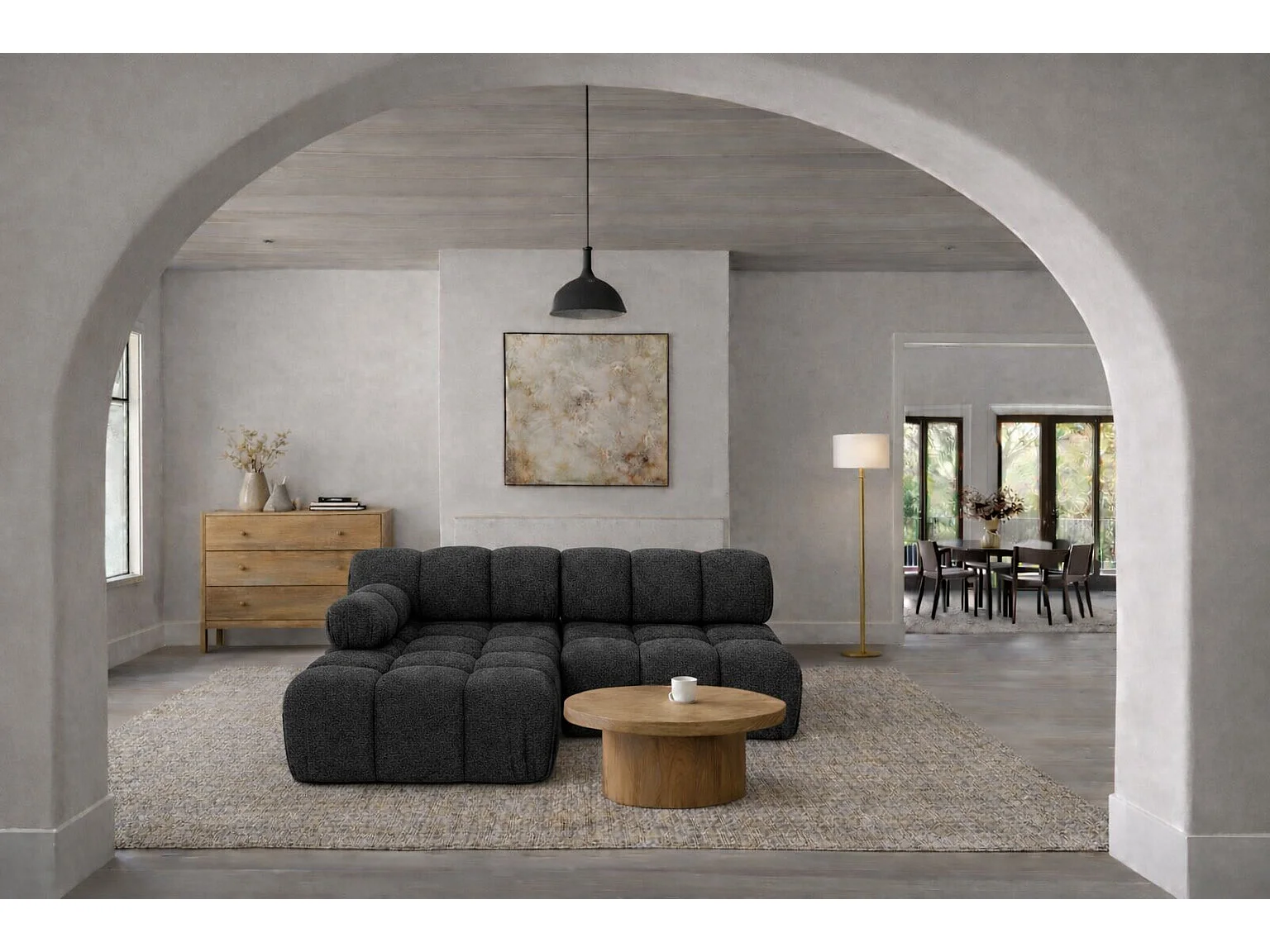 Canapé d’angle en L Mini II modulaire, tissu bouclé Abriamo, Graphite, Gauche, Selia