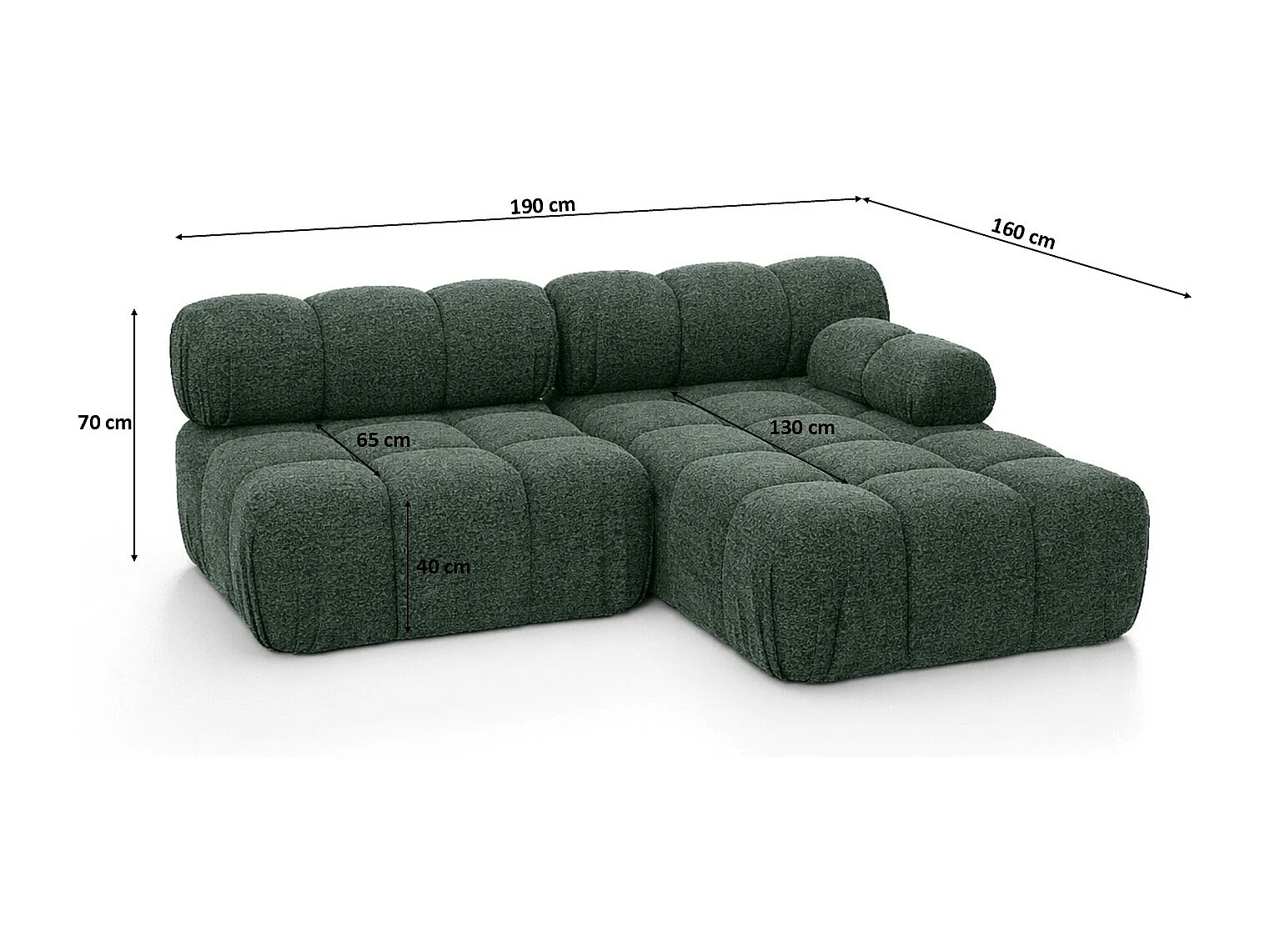 Canapé d’angle en L Mini II modulaire, tissu bouclé Abriamo, Vert foncé, Droite, Selia