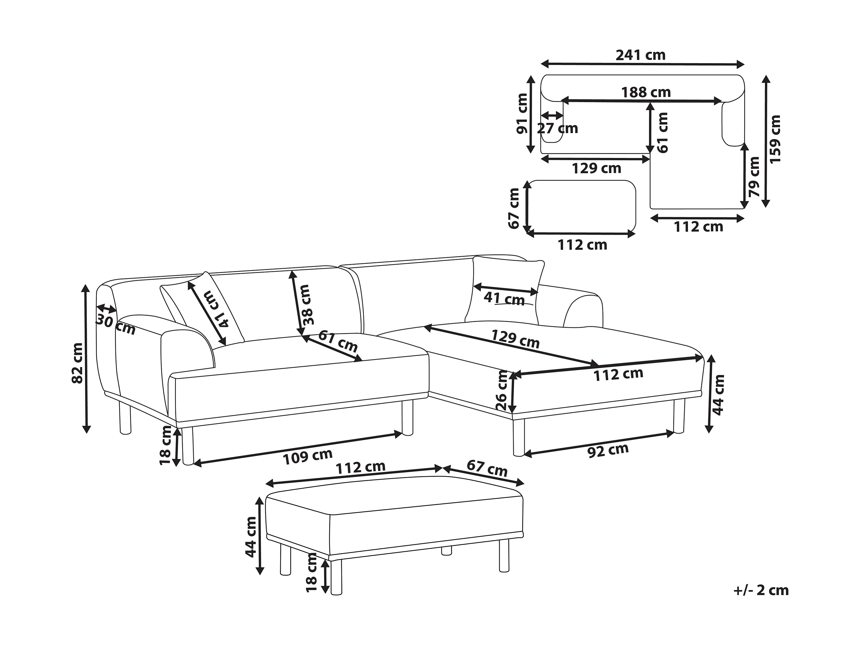 Canapé d'Angle à Gauche Minimaliste avec Ottoman Pouf en Tissu Taupe Holt