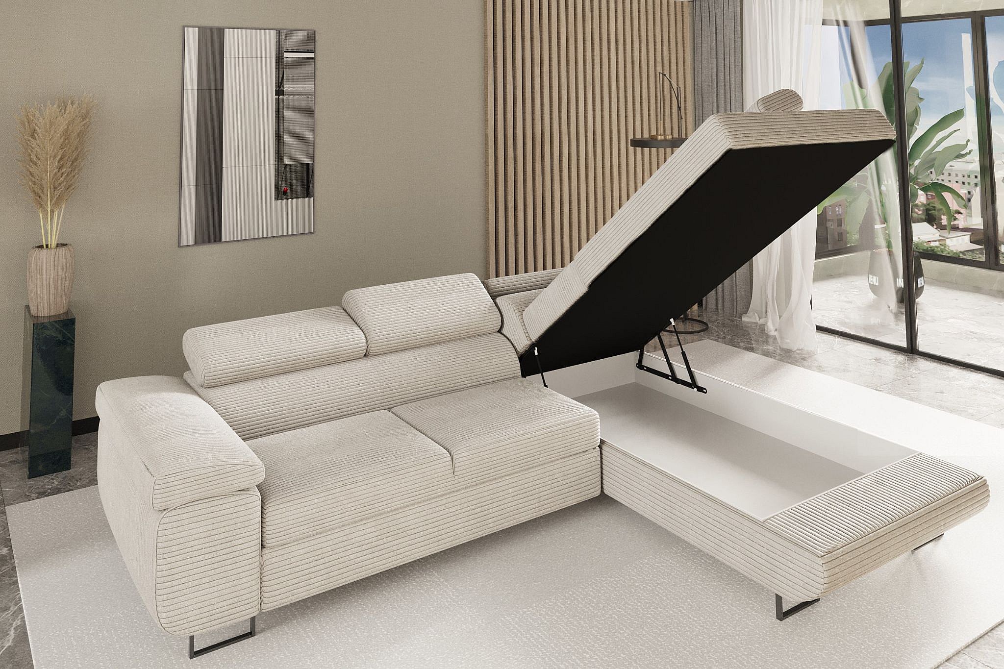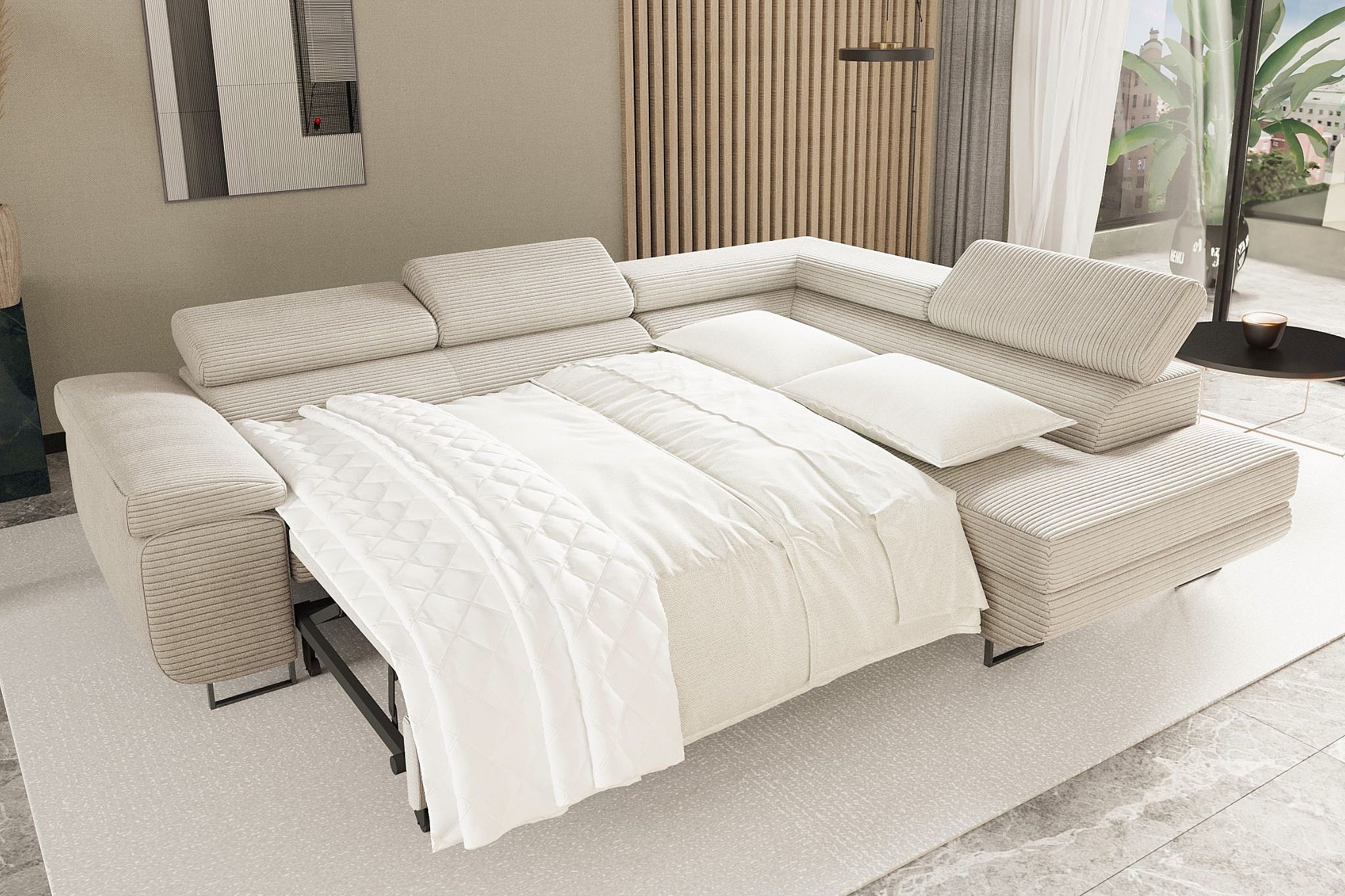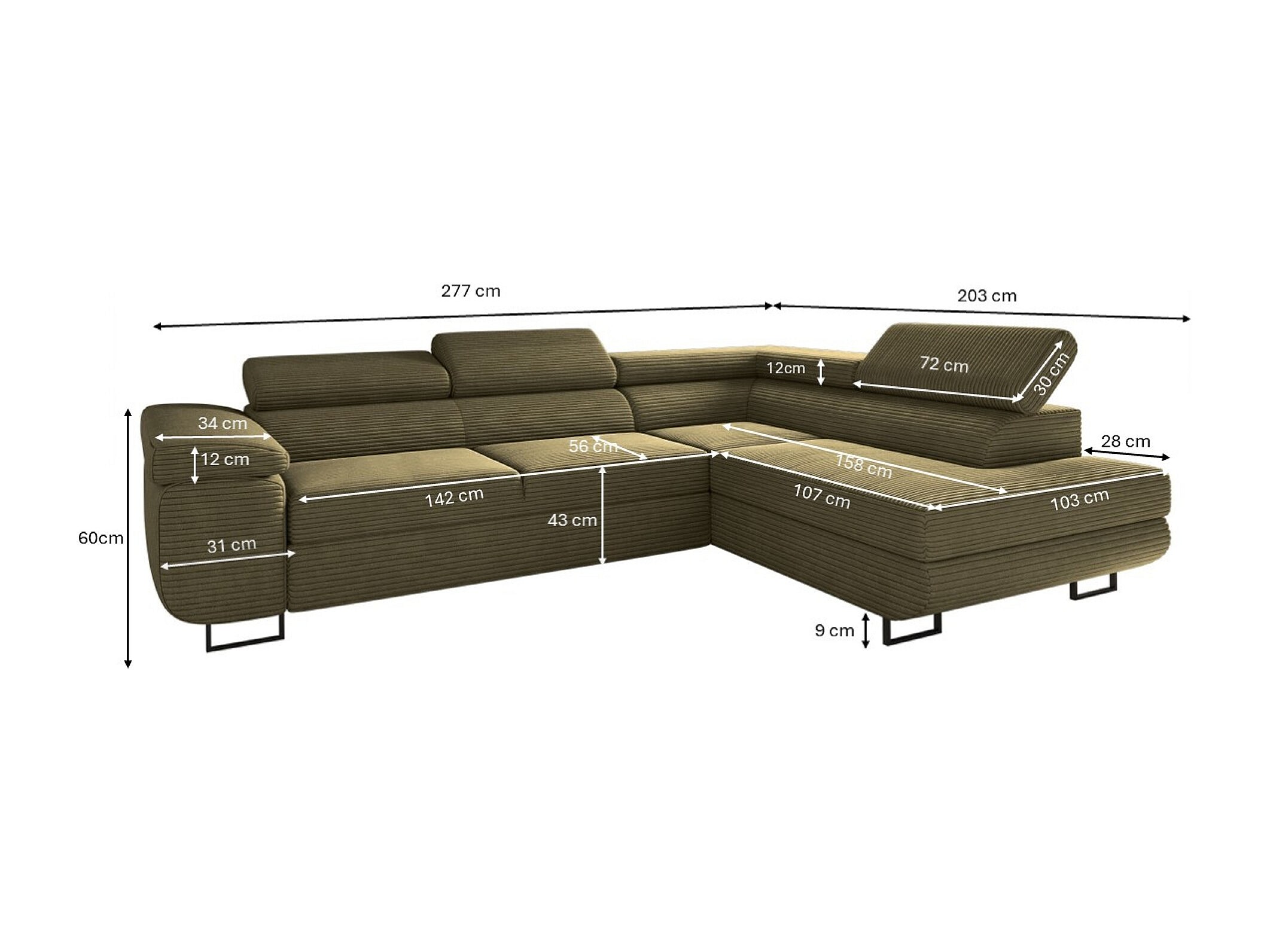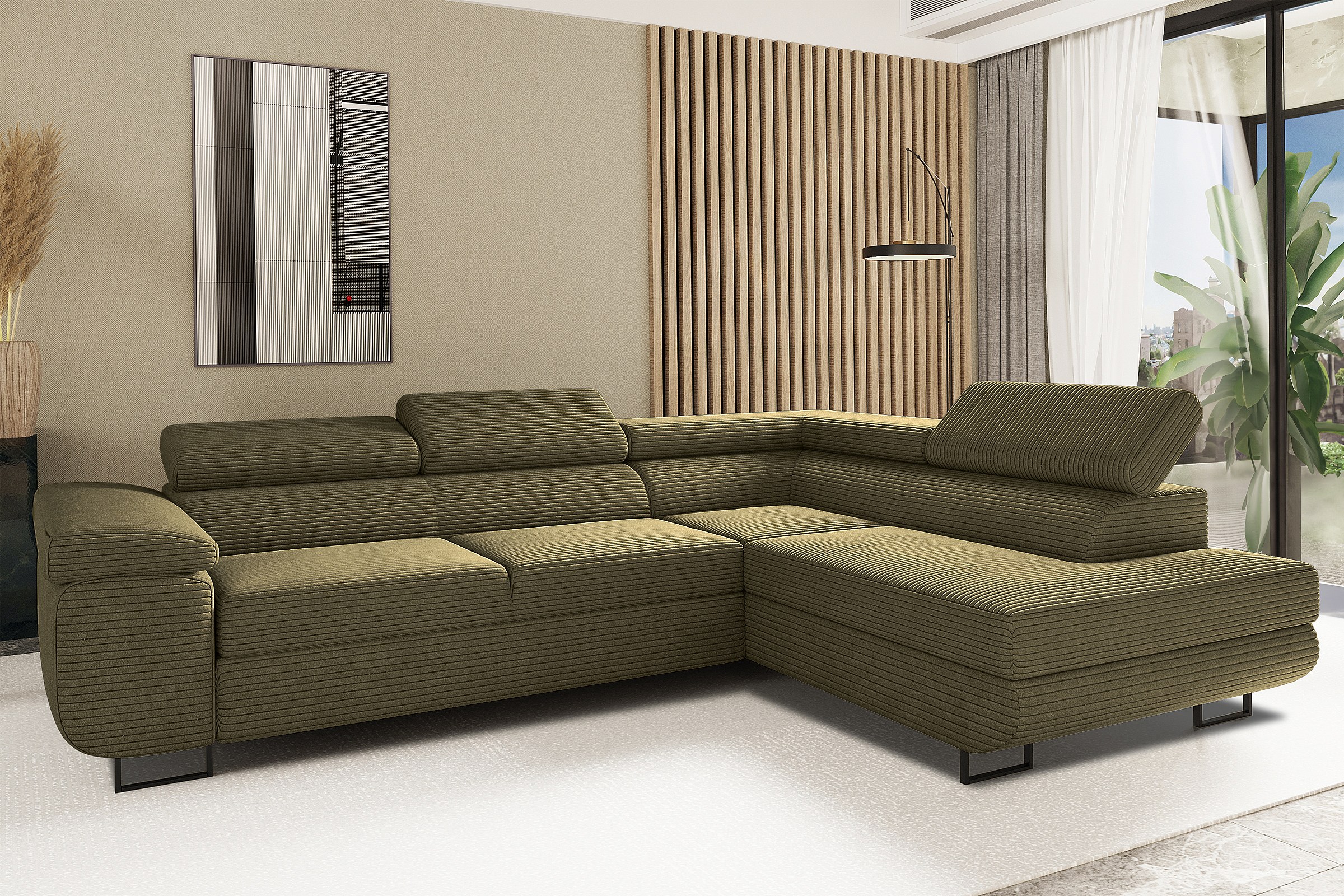 Canapé d'angle ATOMIC avec fonction couchage, tissu Poso, olive, droite