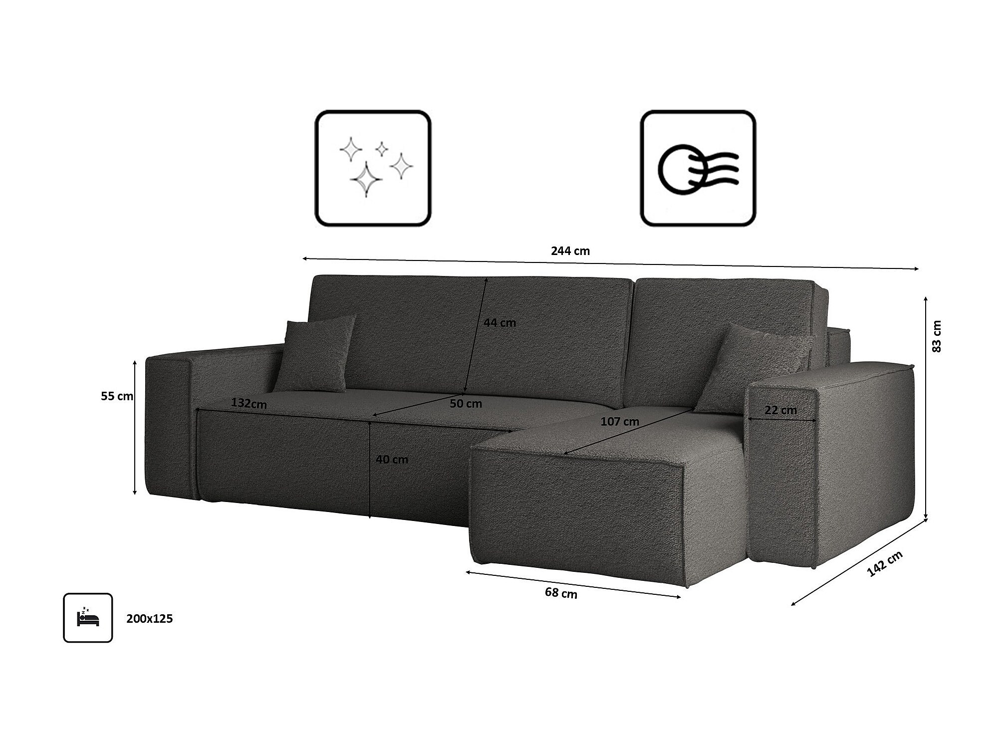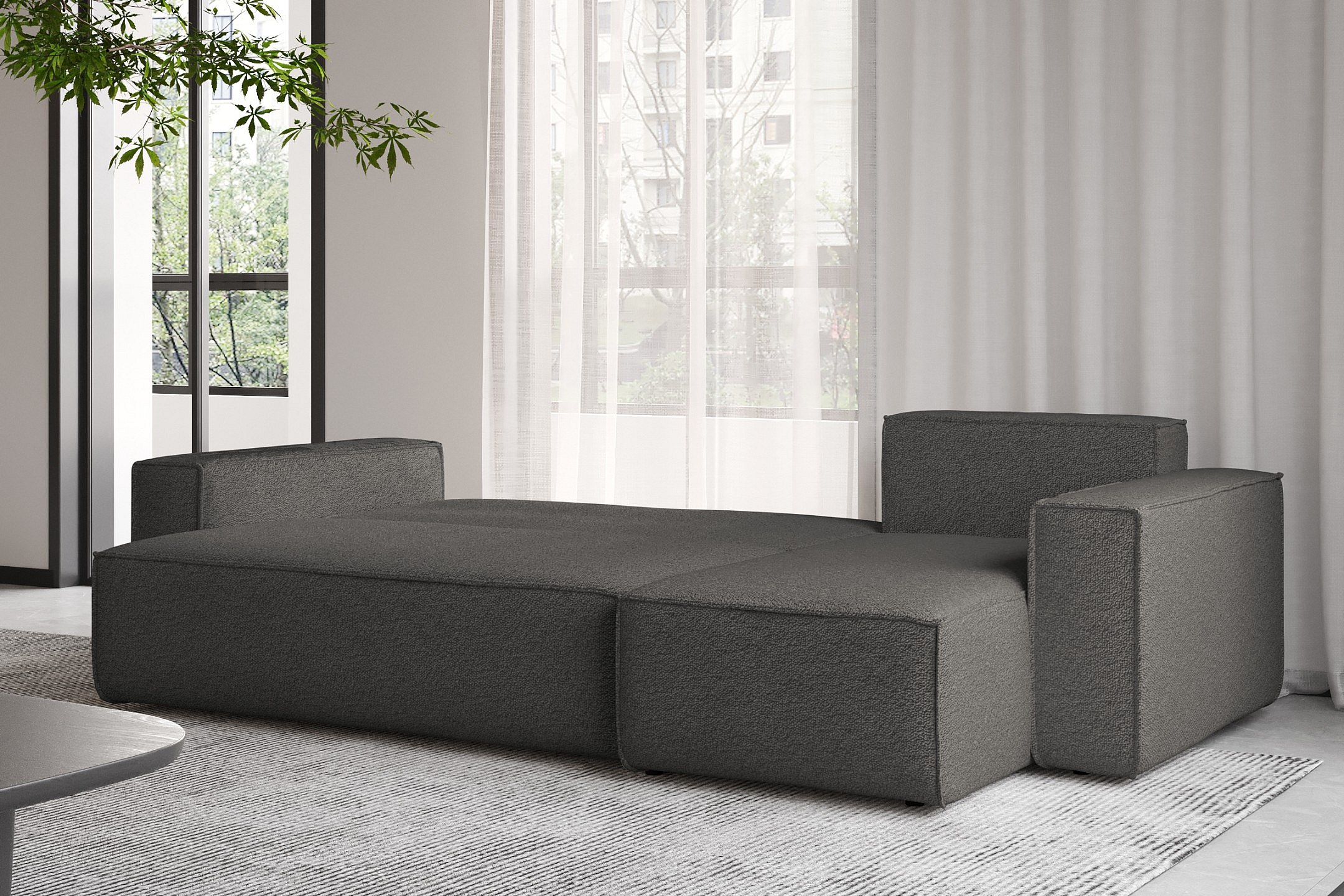 Canapé d'angle avec fonction couchage et coffre de lit, canapé d'angle en L, canapé d'angle en L BEST tissu Abriamo Graphite Droite