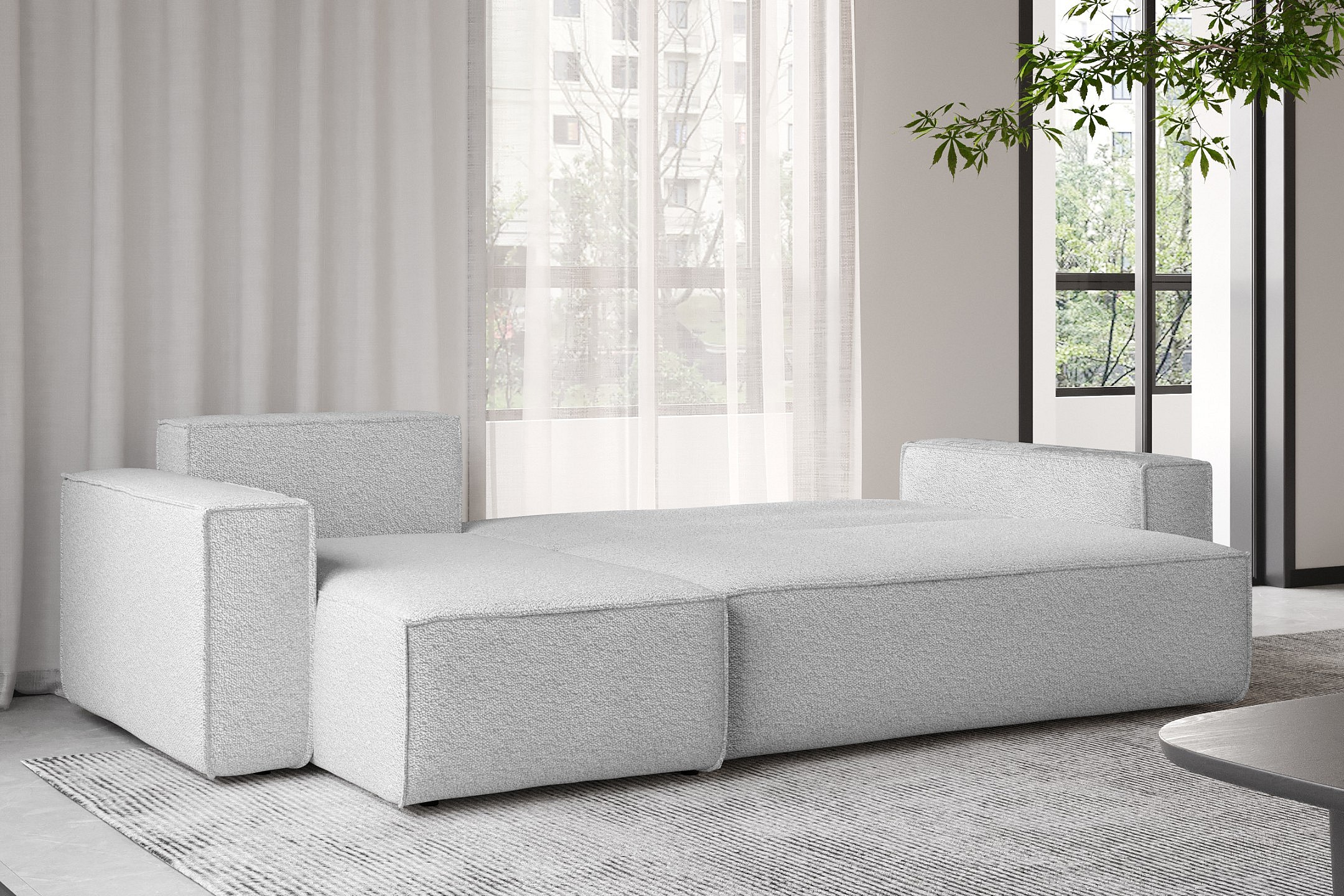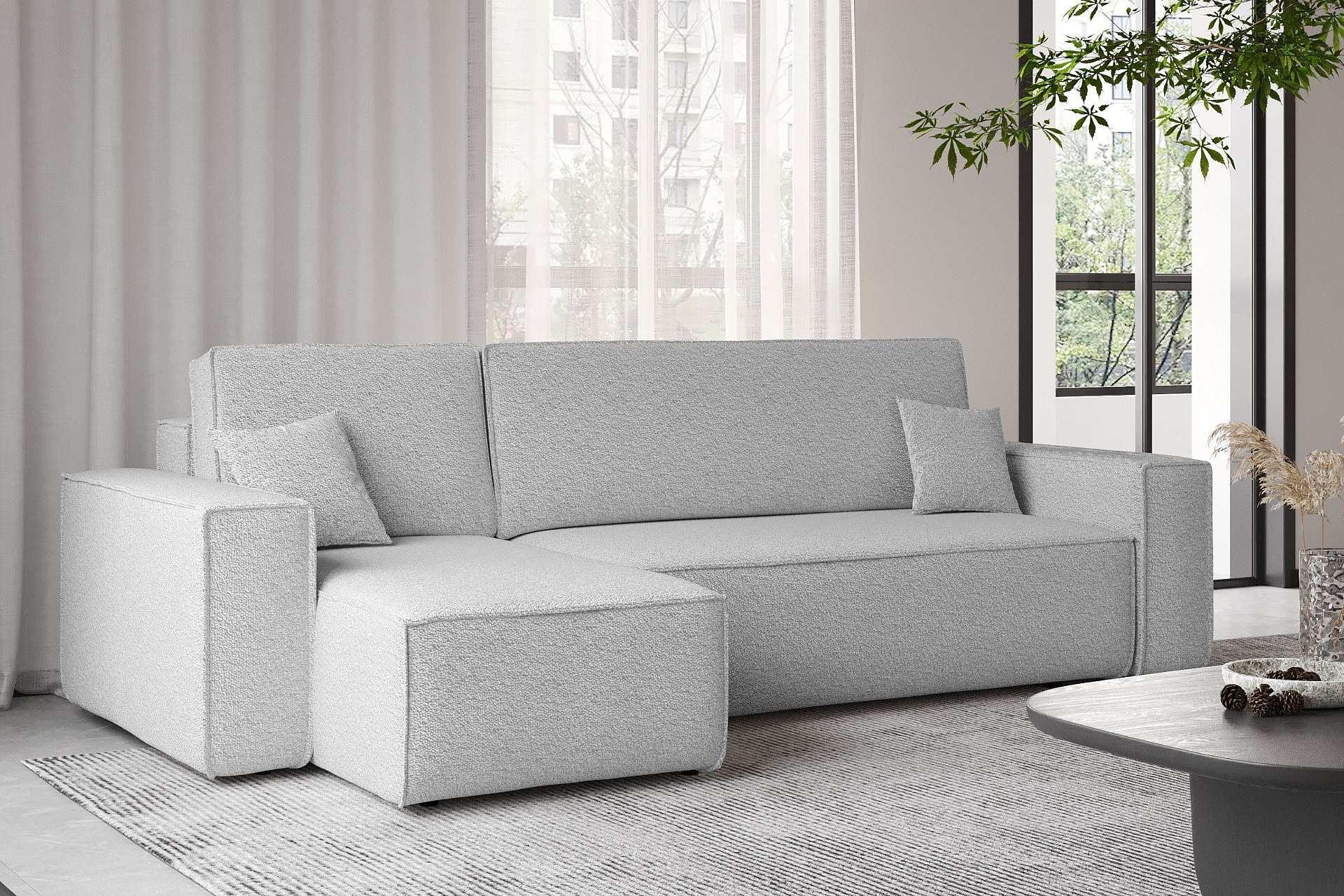 Canapé d'angle avec fonction couchage et coffre de lit, canapé d'angle en L, canapé d'angle en L BEST tissu Abriamo Gris Clair Gauche
