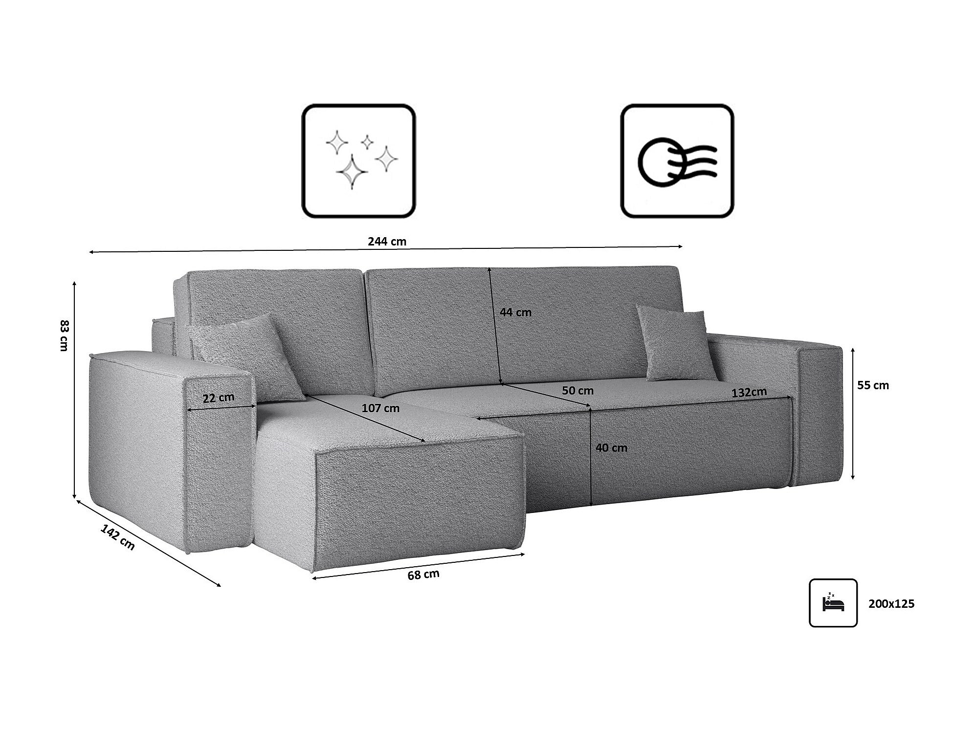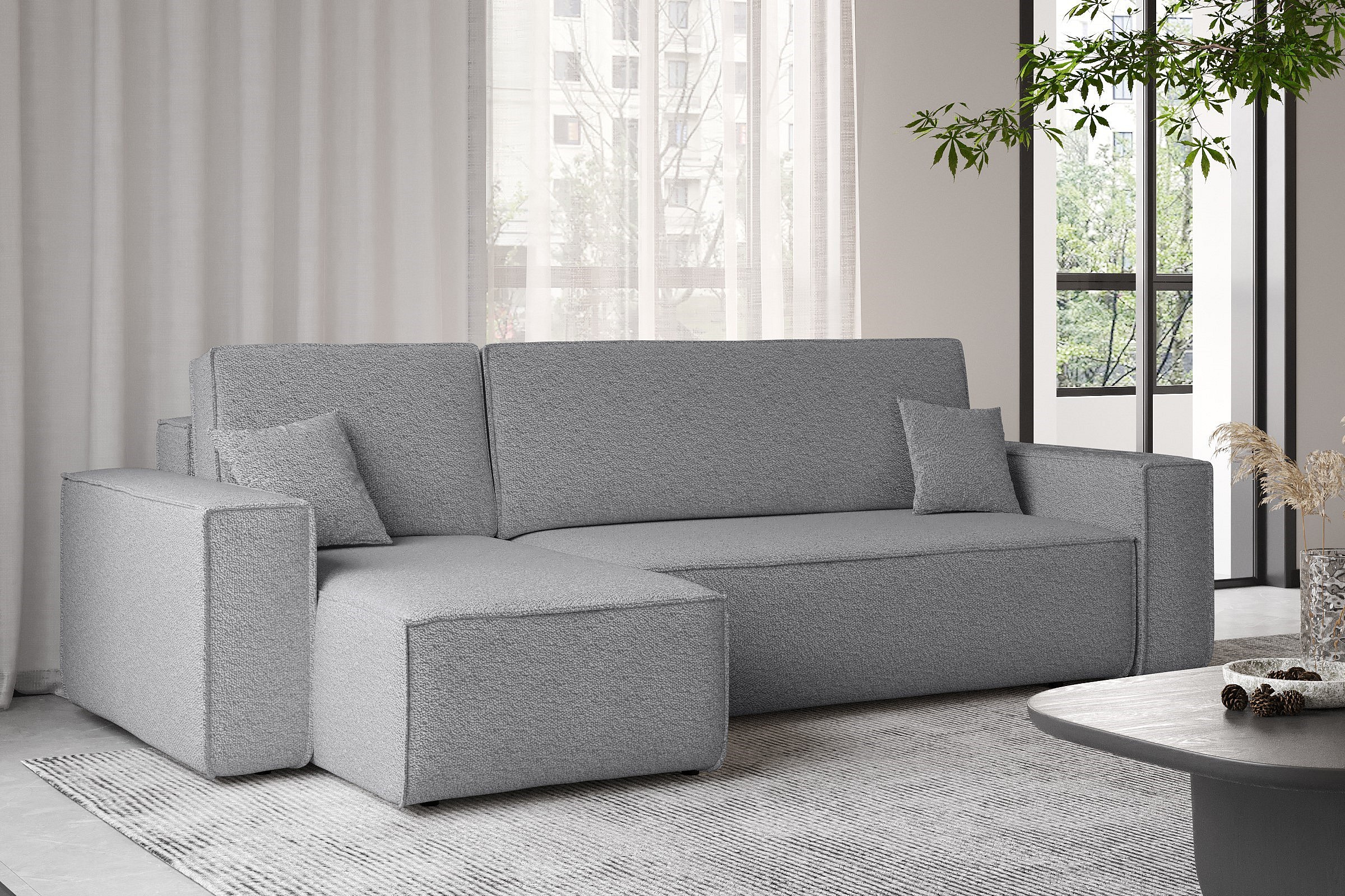 Canapé d'angle avec fonction couchage et coffre de lit, canapé d'angle en L, canapé d'angle en L BEST tissu Abriamo Gris Gauche