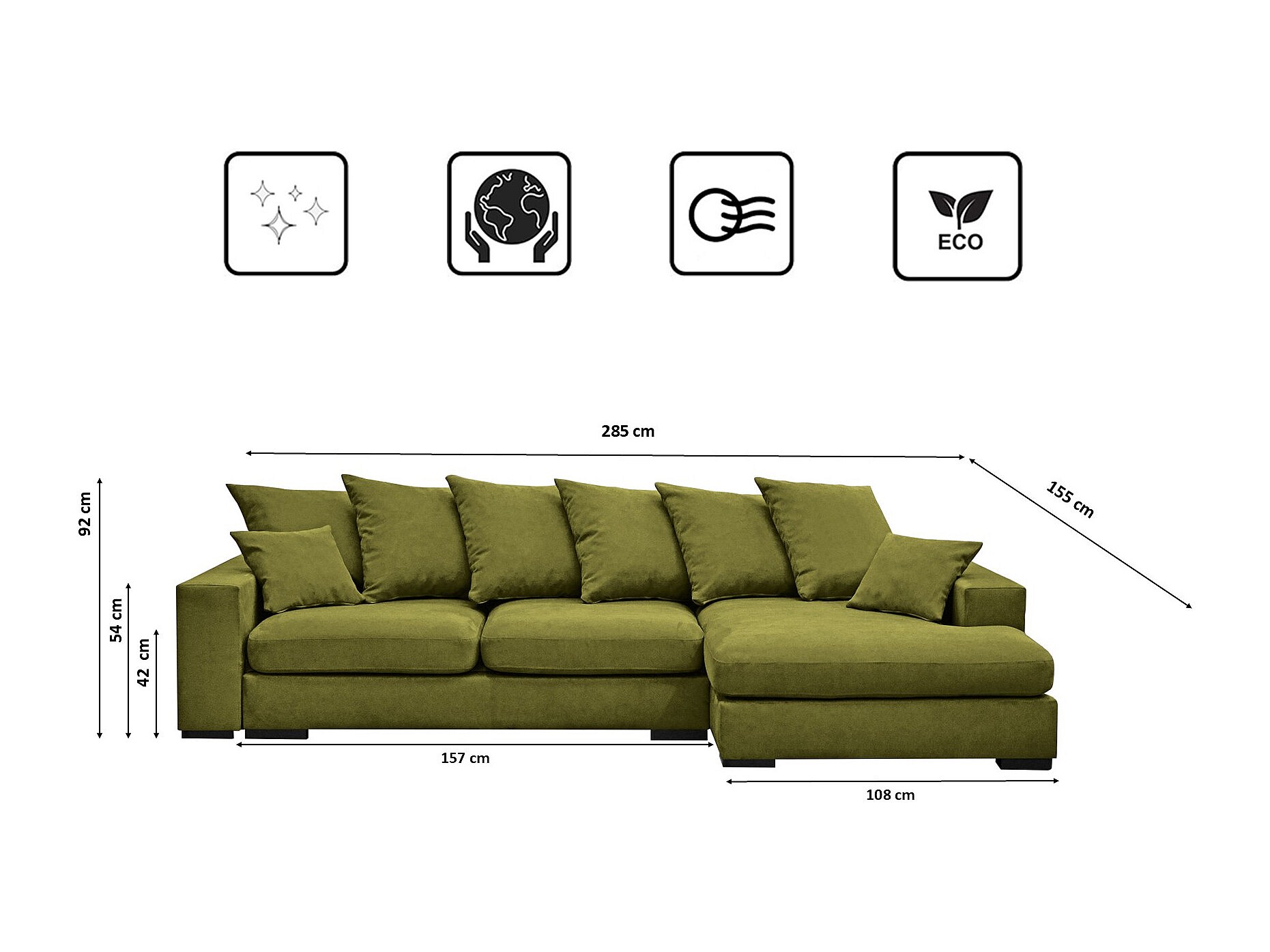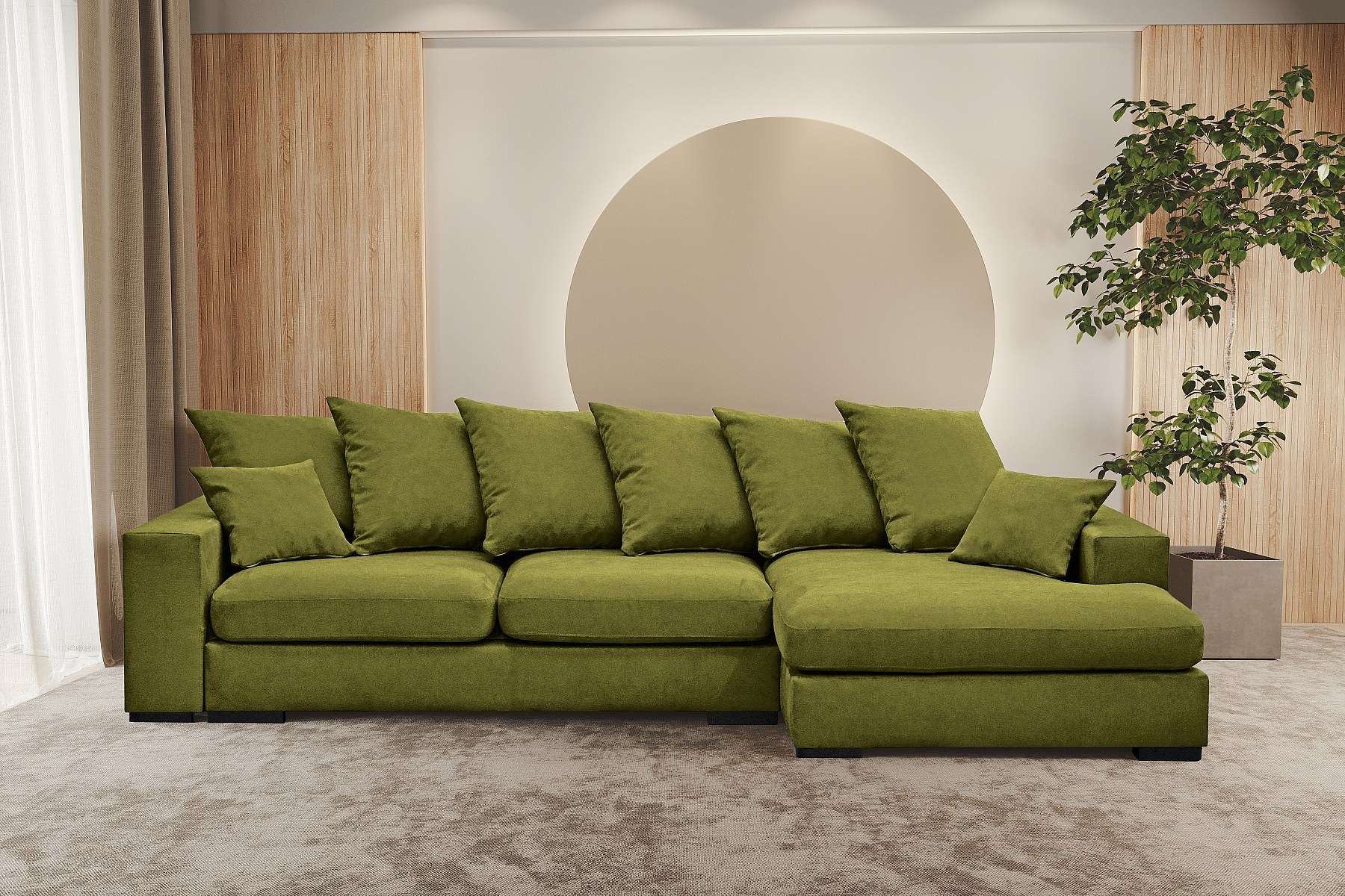 Canapé d'angle avec fonction couchage et coffre de lit, canapé en L, canapé en L tissu Gabon Riviera Droite Vert Clair