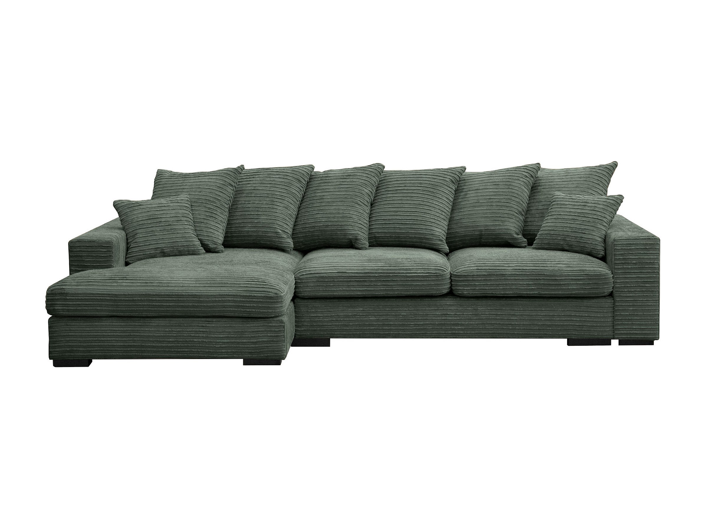 Canapé d'angle avec fonction couchage et coffre de lit, Canapé forme L, Canapé forme L tissu Gabon Zoom Vert Gauche