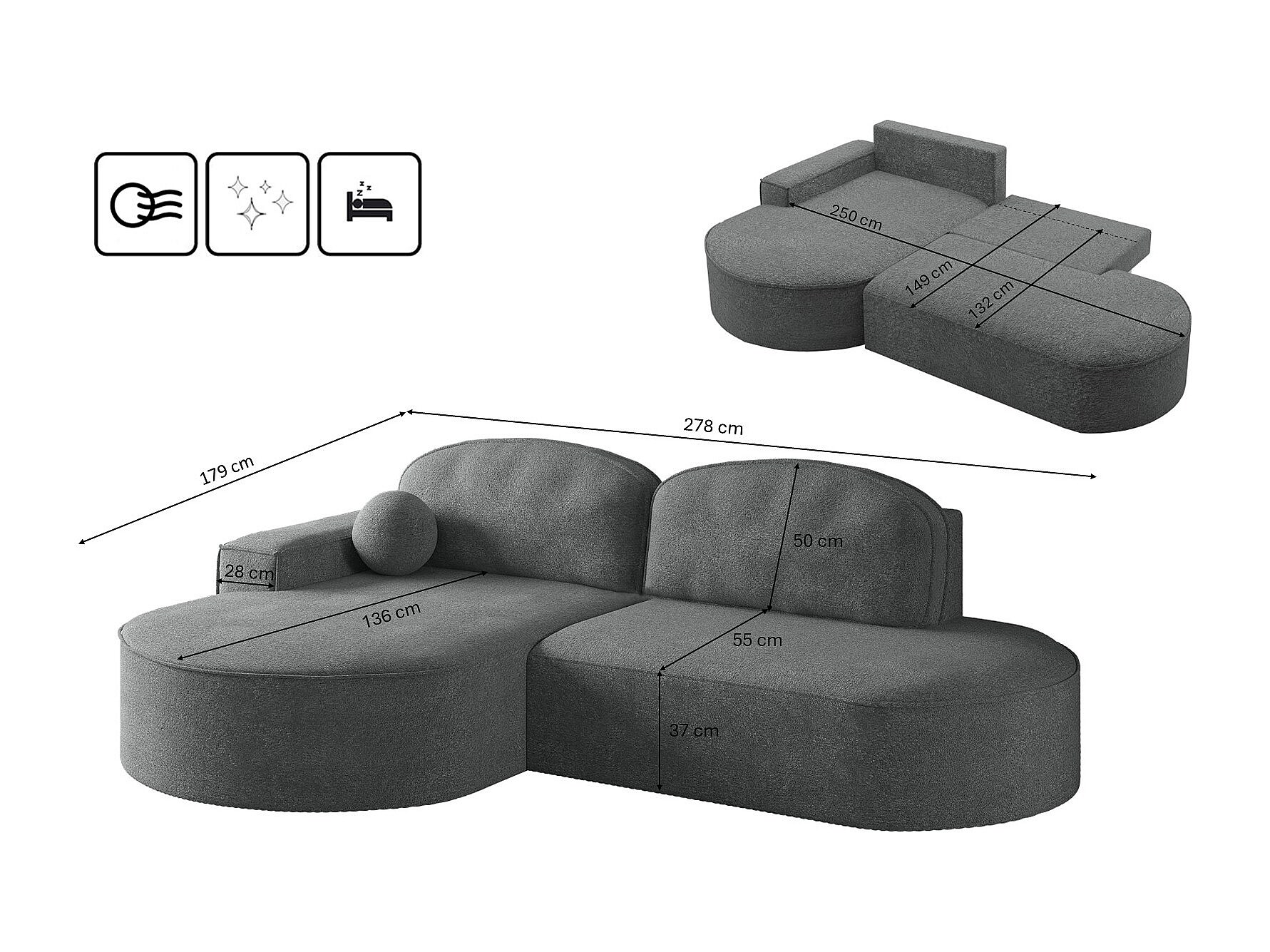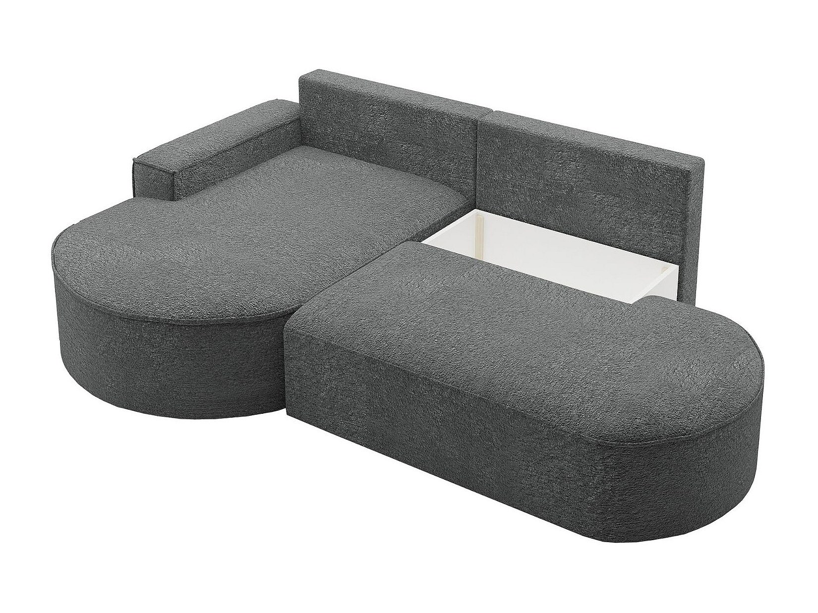 Canapé d'angle avec fonction couchage et coffre de lit Modena Round tissu Arena Anthracite Gauche