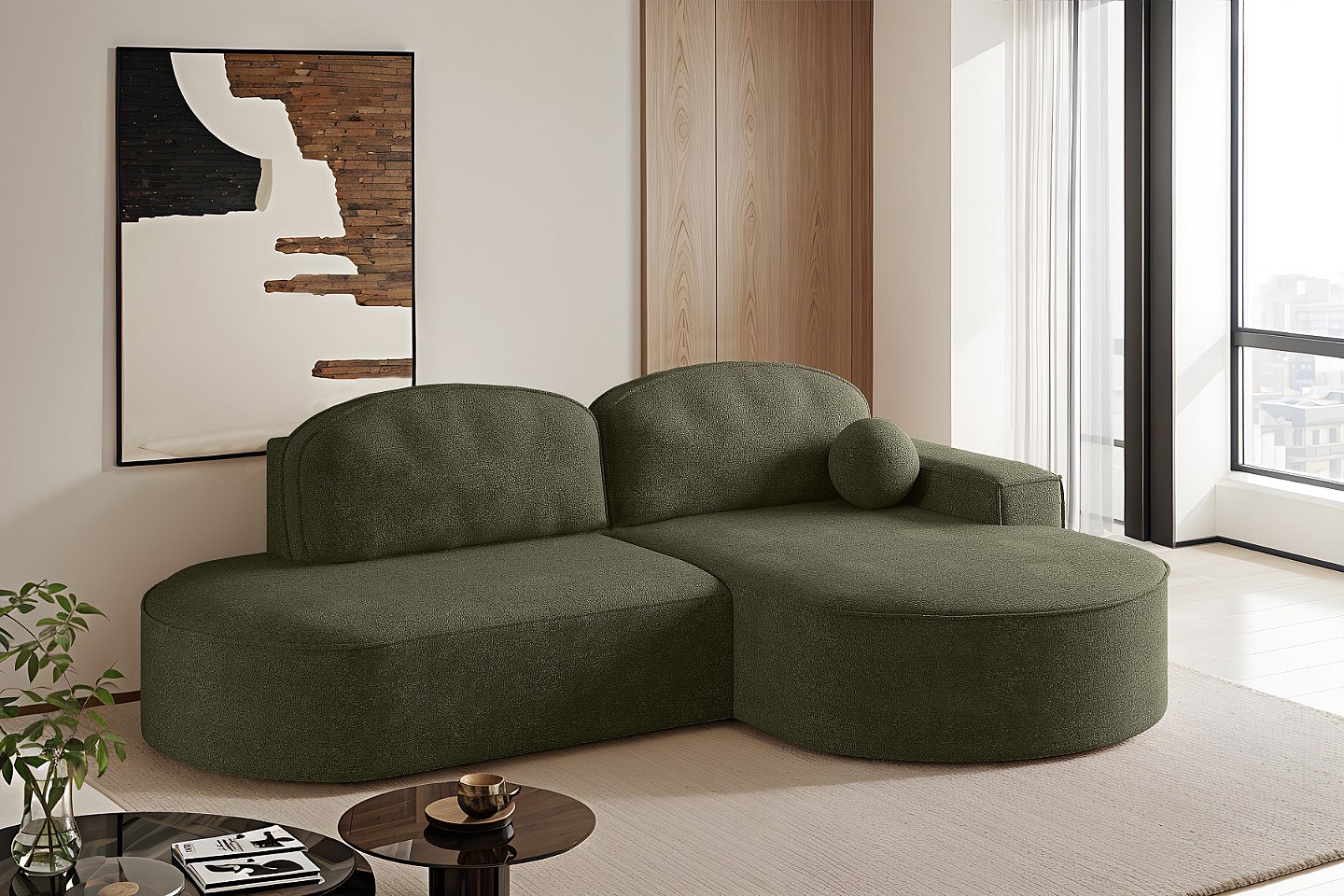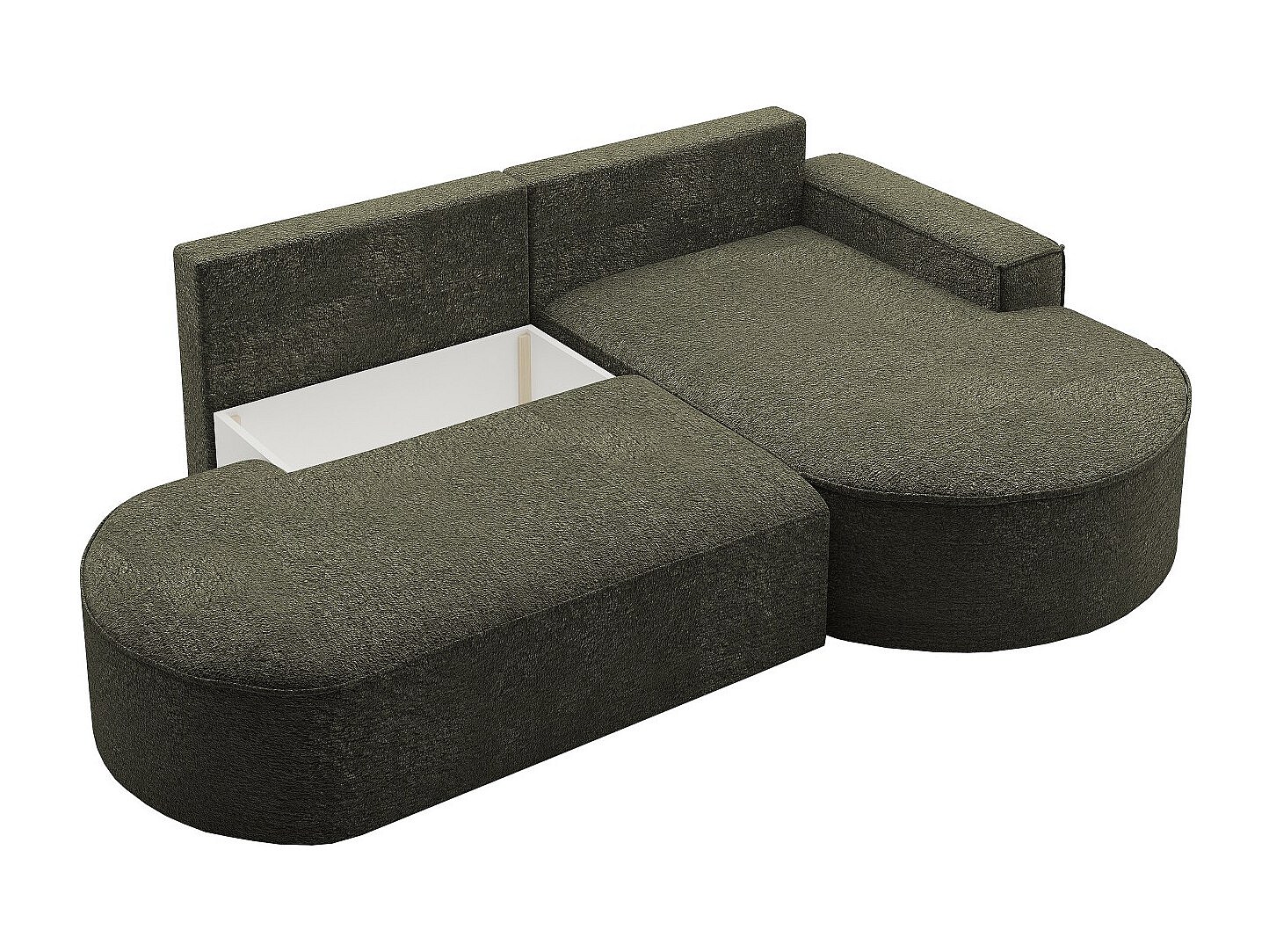 Canapé d'angle avec fonction couchage et coffre de lit Modena Round tissu Arena Green Right