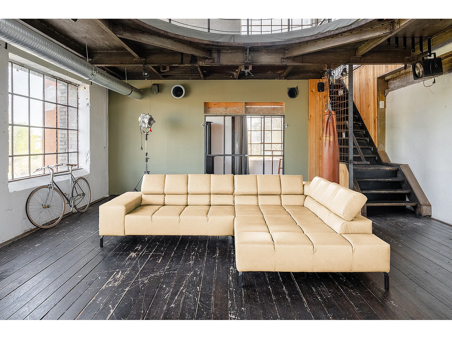 Canapé Angle à Droite en Cuir Véritable Beige Dossier Matelassé Housses Amovibles Oslo