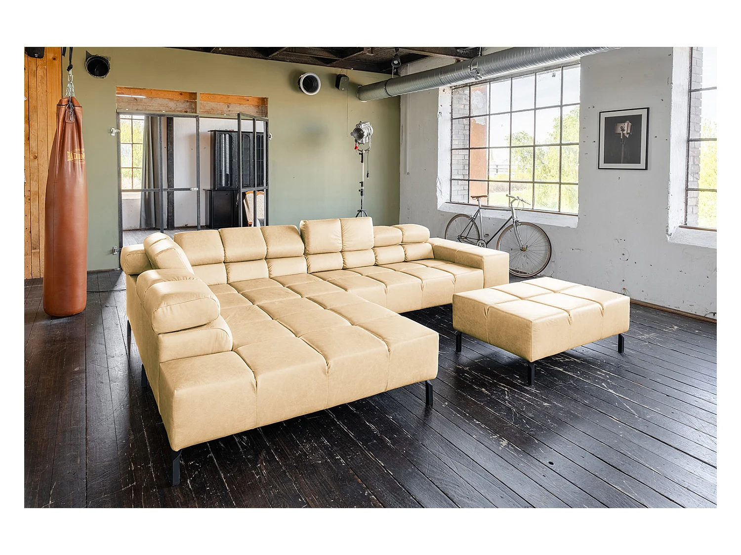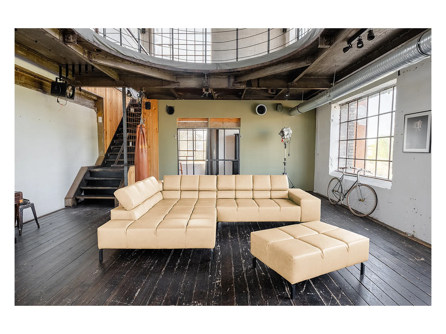 Canapé Angle à droite en Cuir Véritable Beige Dossier Matelassé Housses Amovibles Oslo