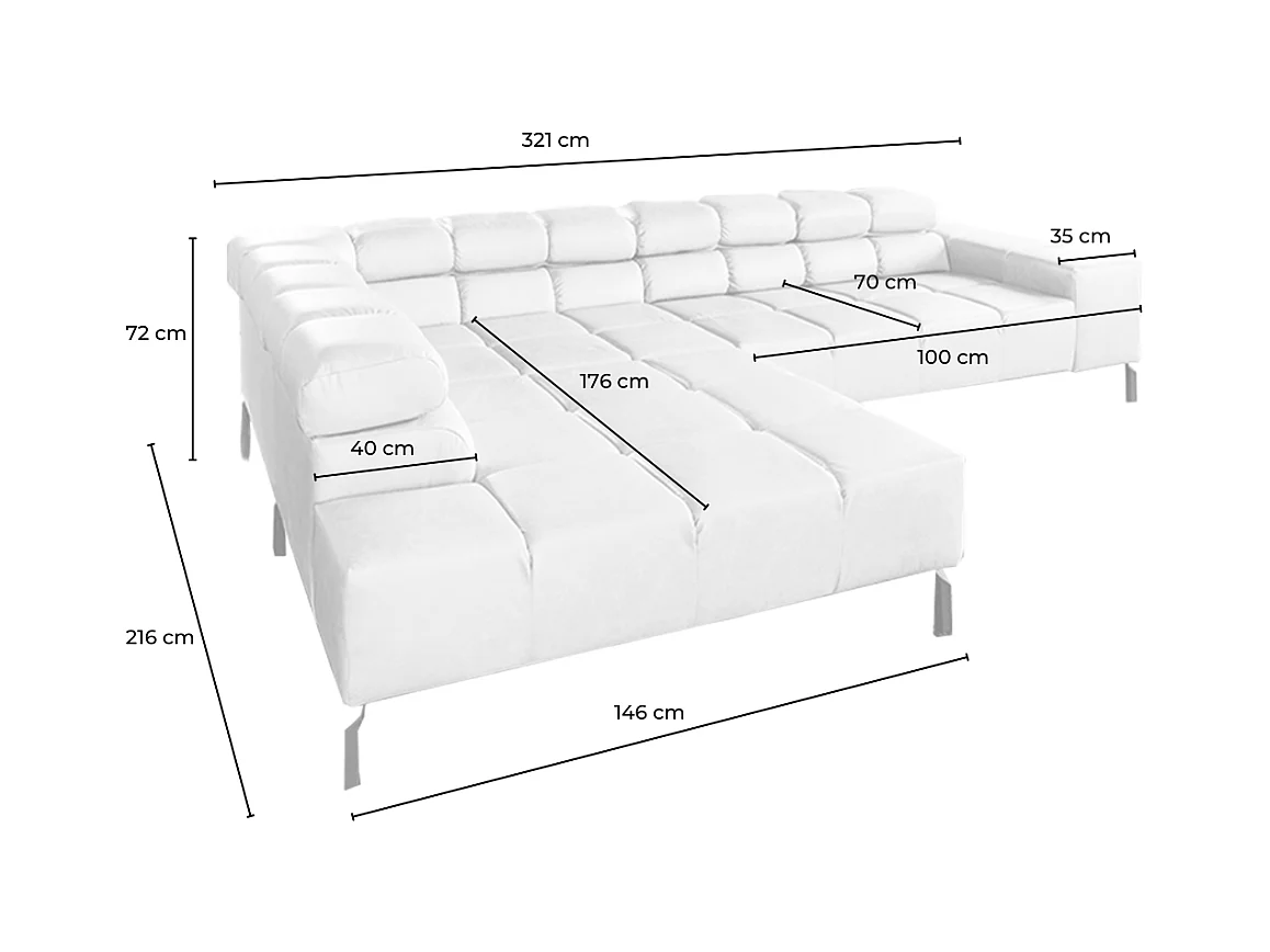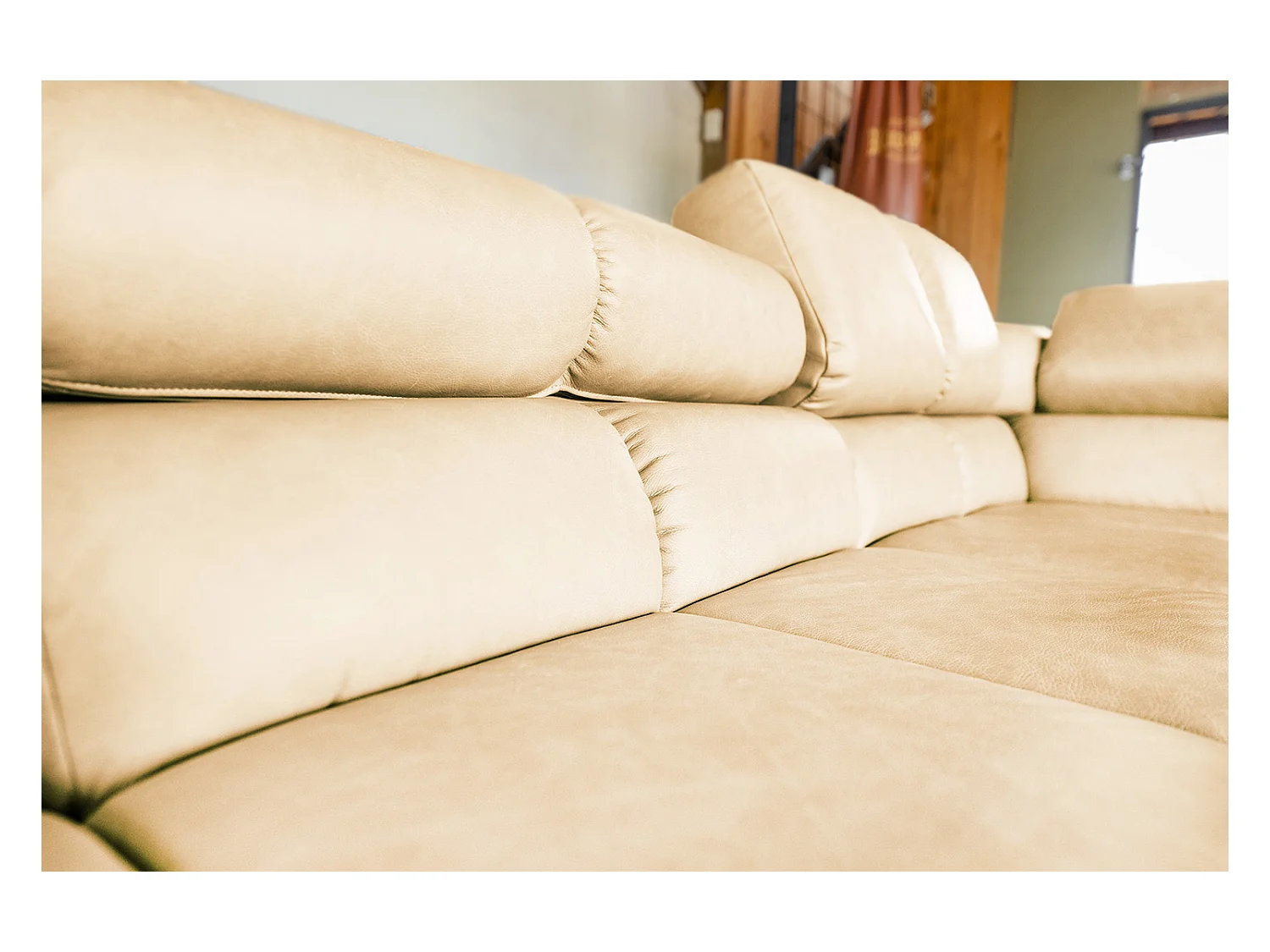 Canapé d'Angle à droite Moderne en Cuir Réglable au Niveau des Appuis-Tête et Accoudoirs 4 Places Gris Clair Taupe Farila