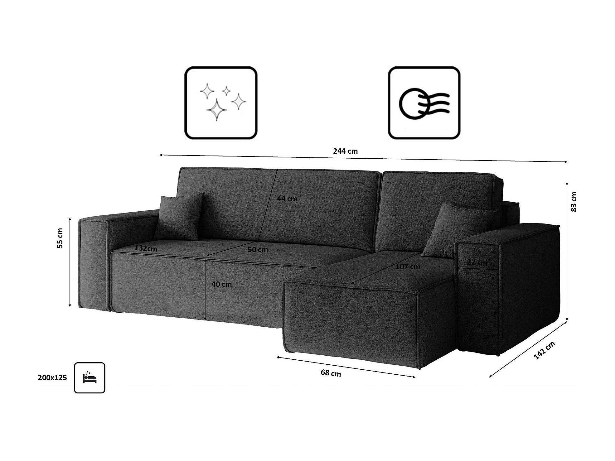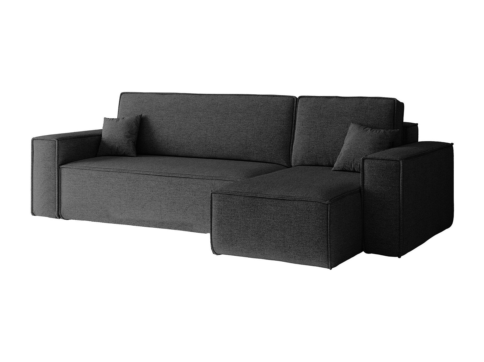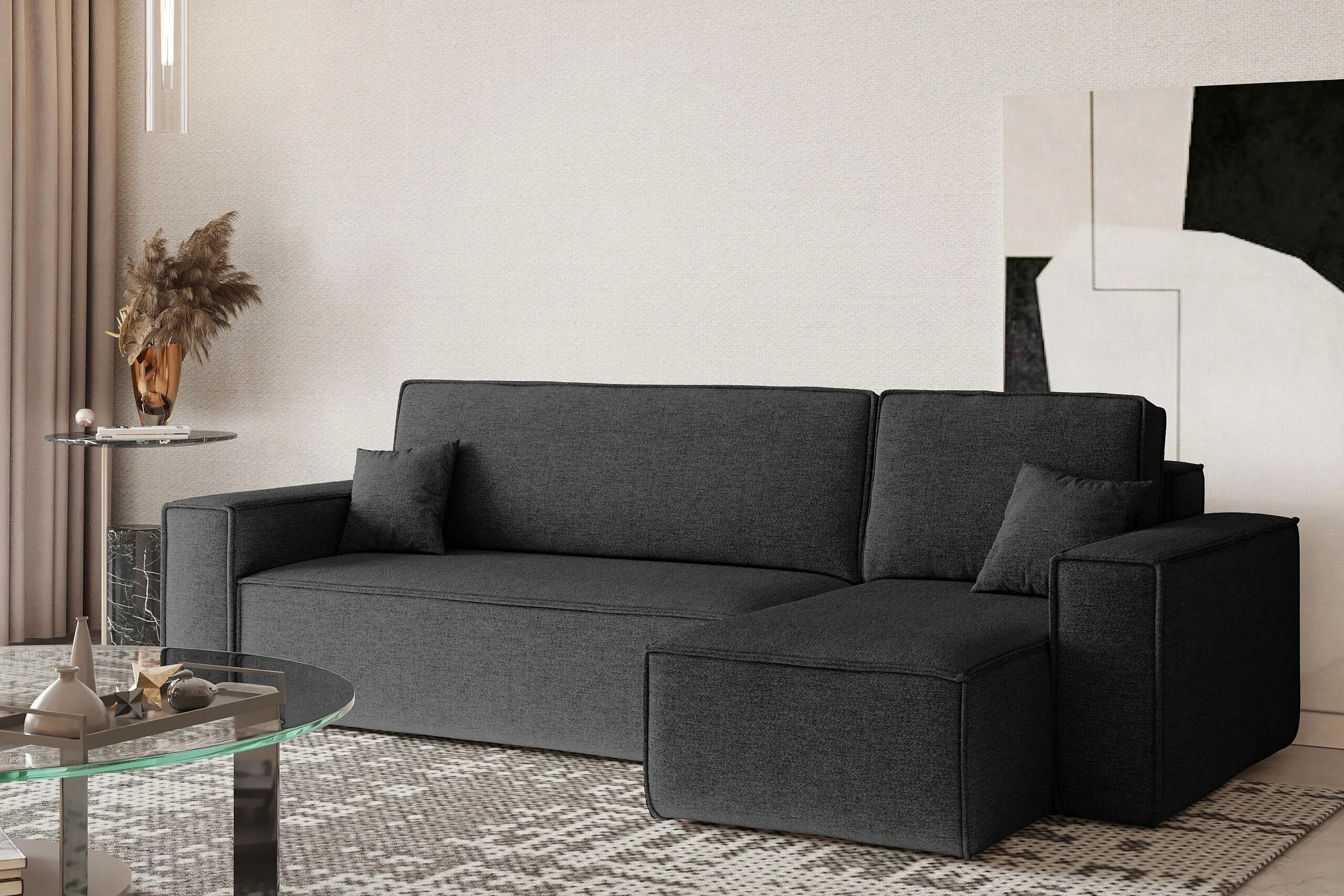 Canapé d'angle Best en L avec fonction couchage et coffre de lit, tissu Neve, gris foncé, droit
