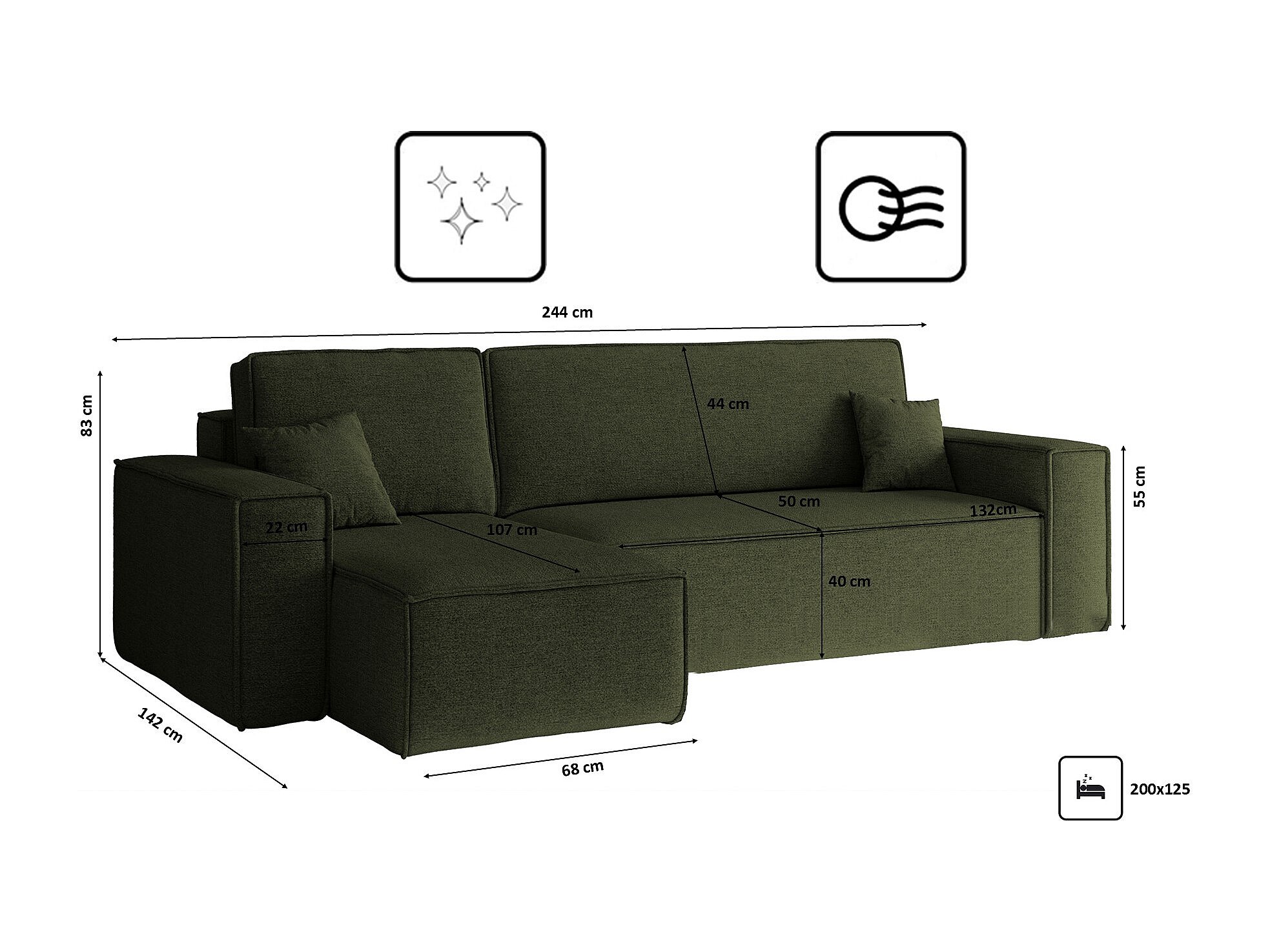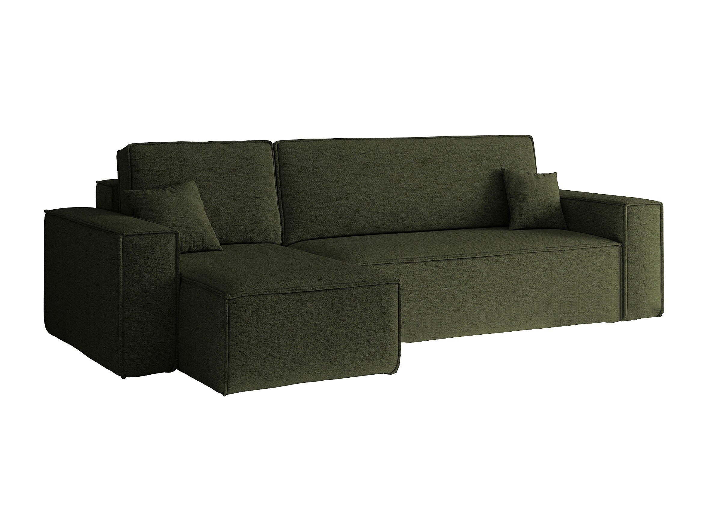 Canapé d'angle Best en L avec fonction couchage et coffre de lit, tissu Neve, olive, gauche