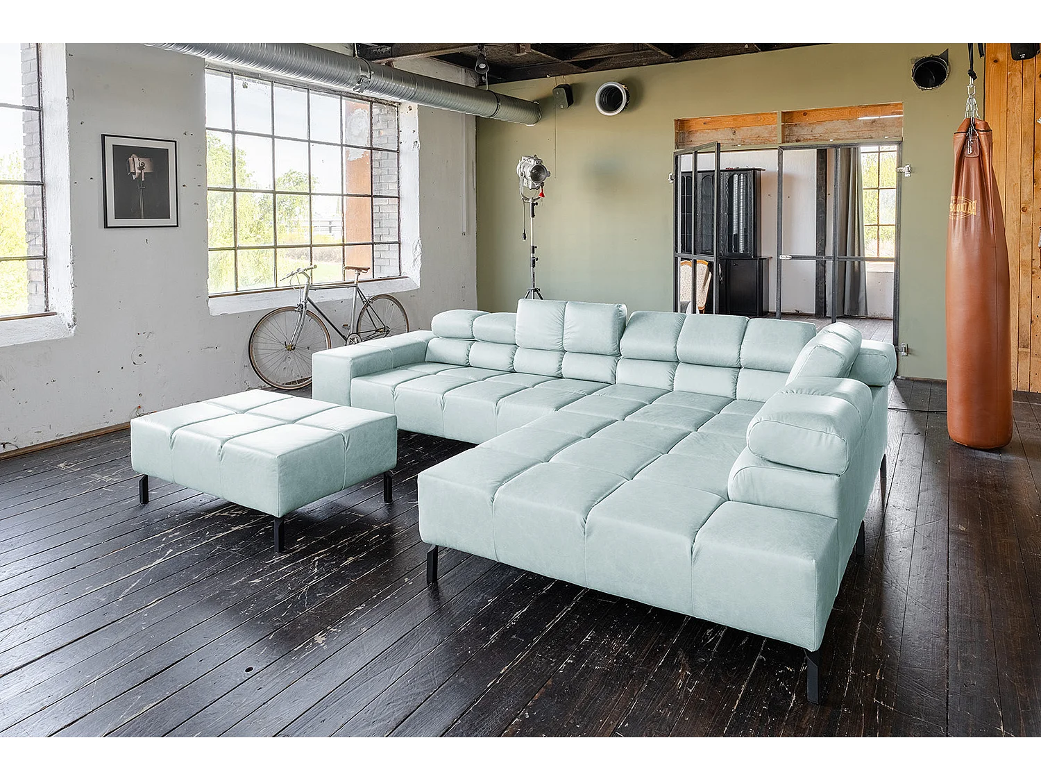 Canapé d'angle - bleu clair Velours côtelé - DELIA