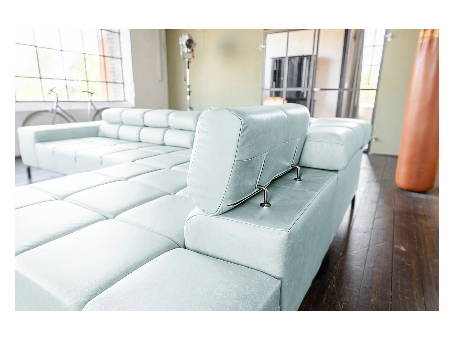 Canapé d'angle - bleu clair cuir - NELSON