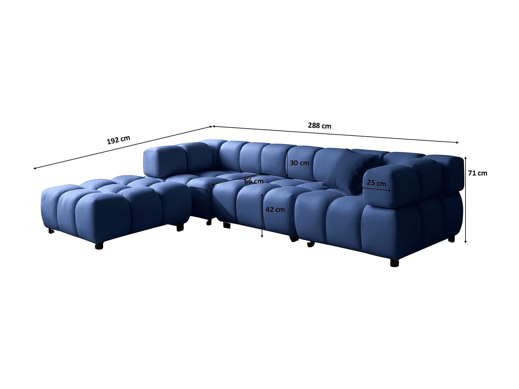Canapé d'angle Bolla en forme de L, tissu Bluvel, bleu encre, côté gauche