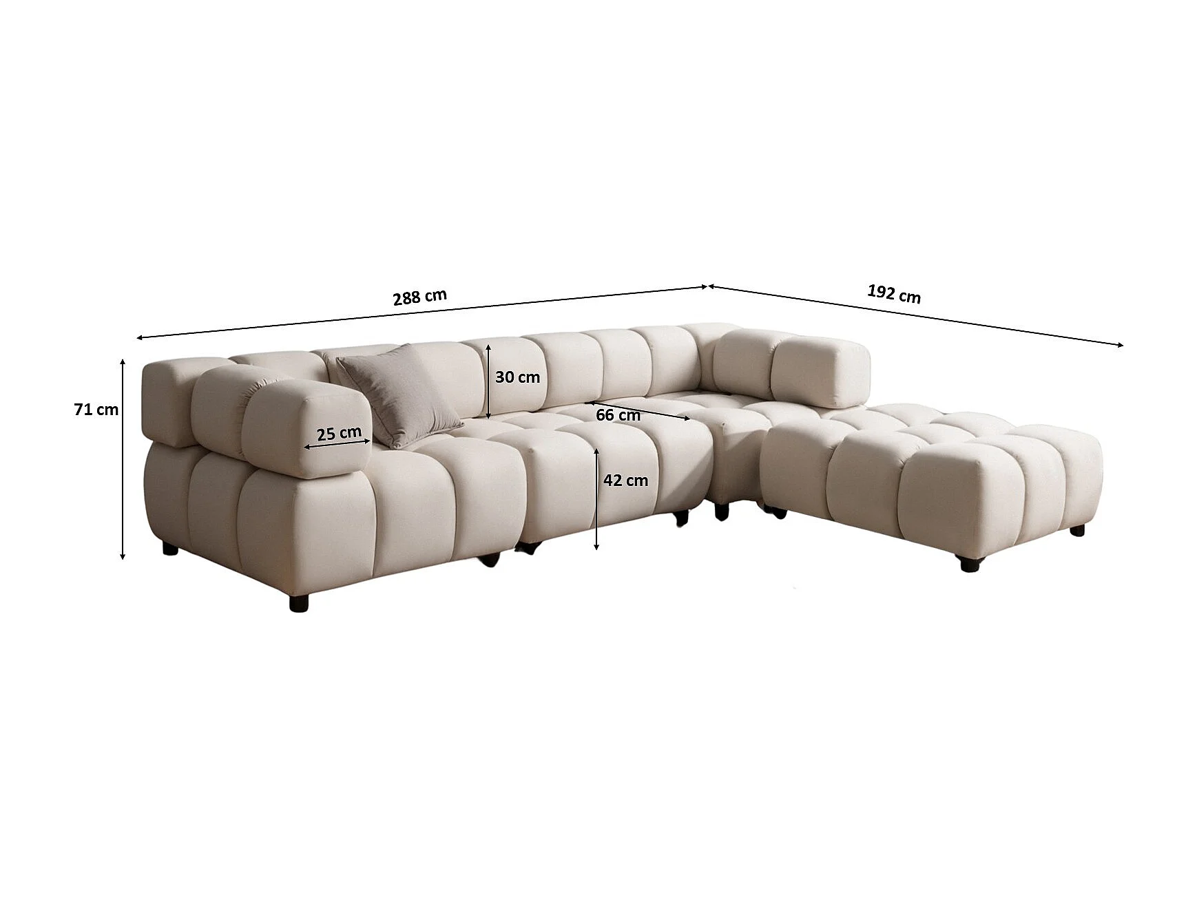 Canapé d'angle Bolla en forme de L, tissu Bluvel, crème, côté droit