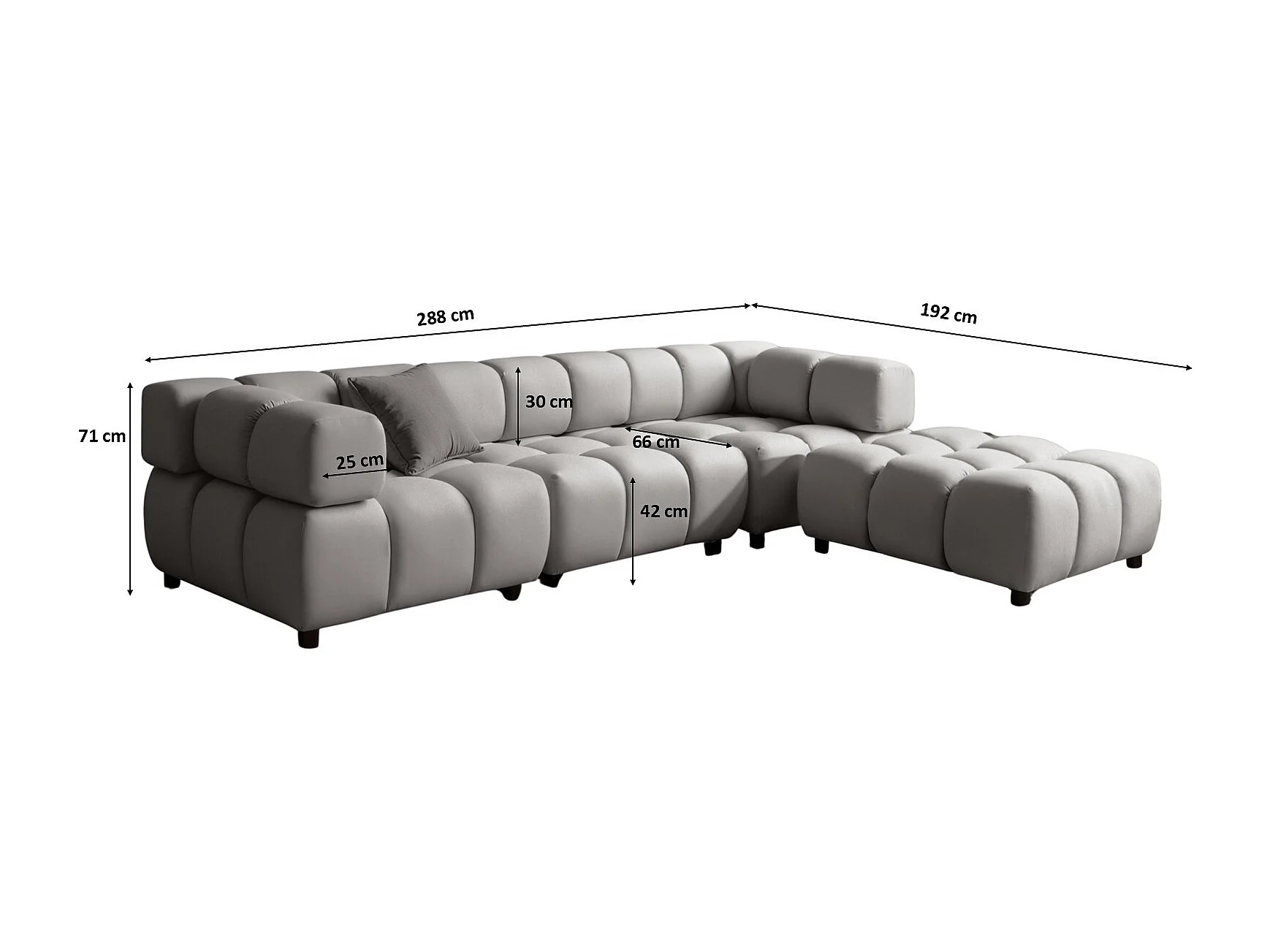 Canapé d'angle Bolla en forme de L, tissu Bluvel, gris, côté droit