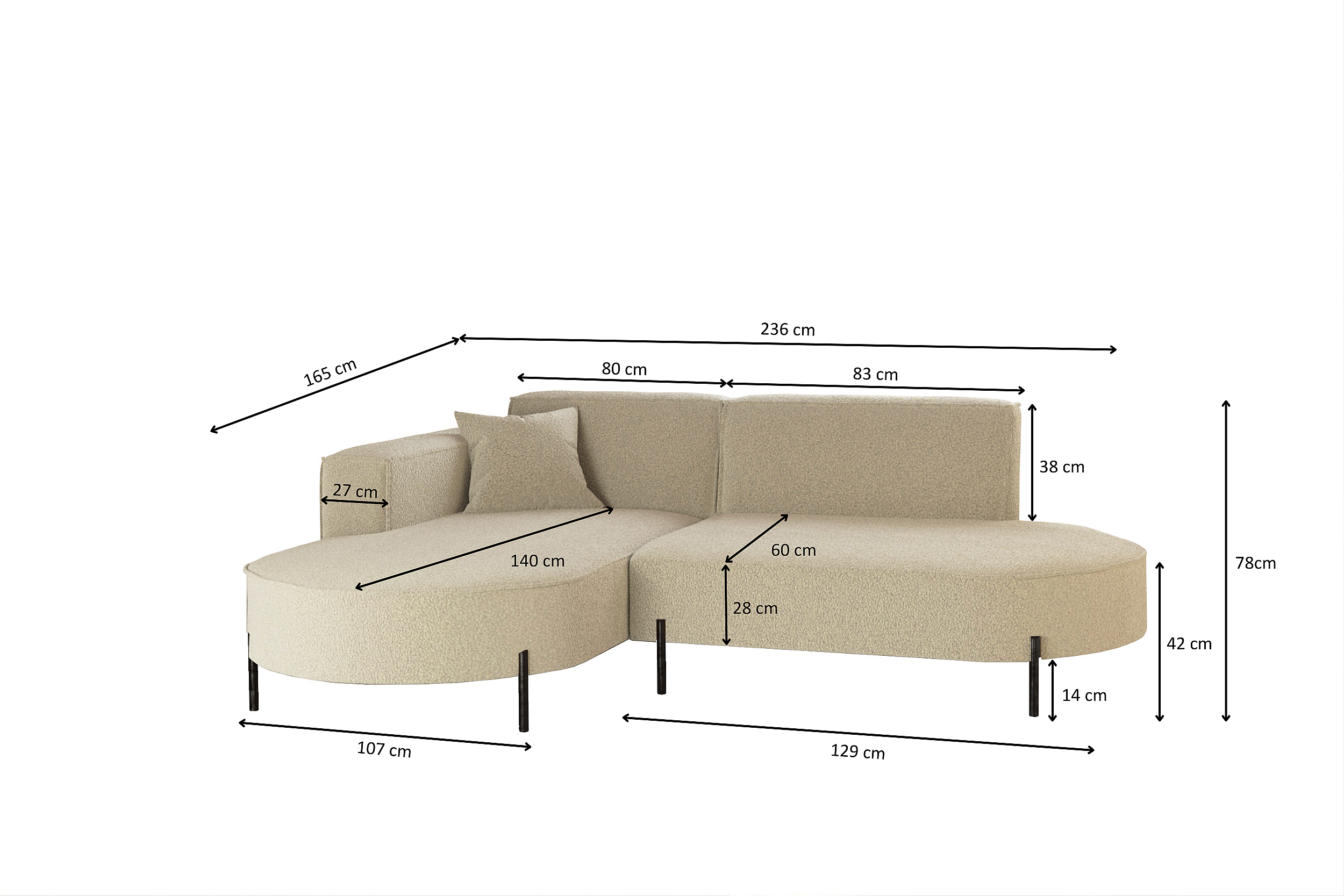 Canapé d'angle, canapé en L design Modena tissu pur source beige gauche