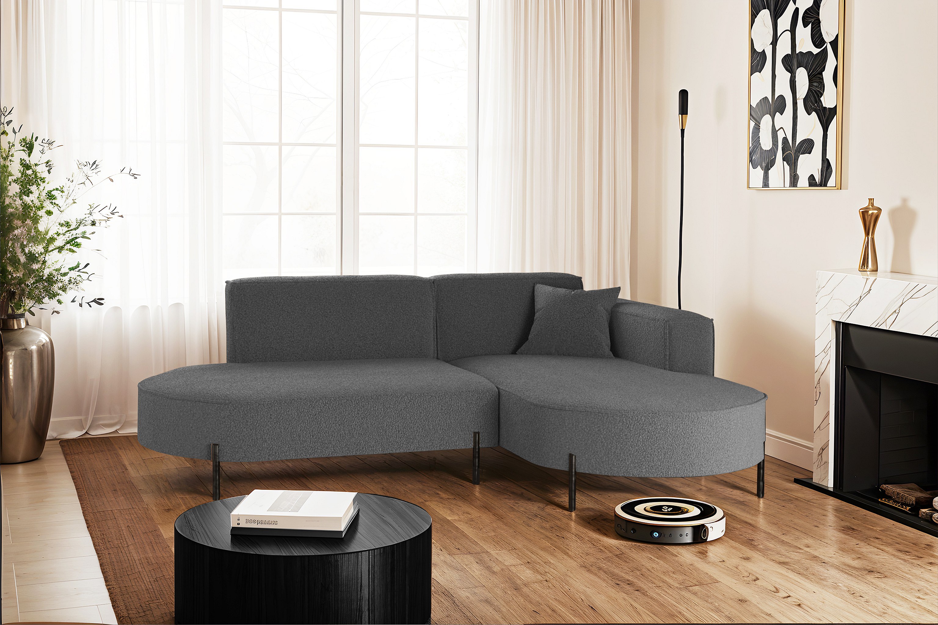 Canapé d'angle, canapé en L, designer Modena, tissu pur, source graphite, droite