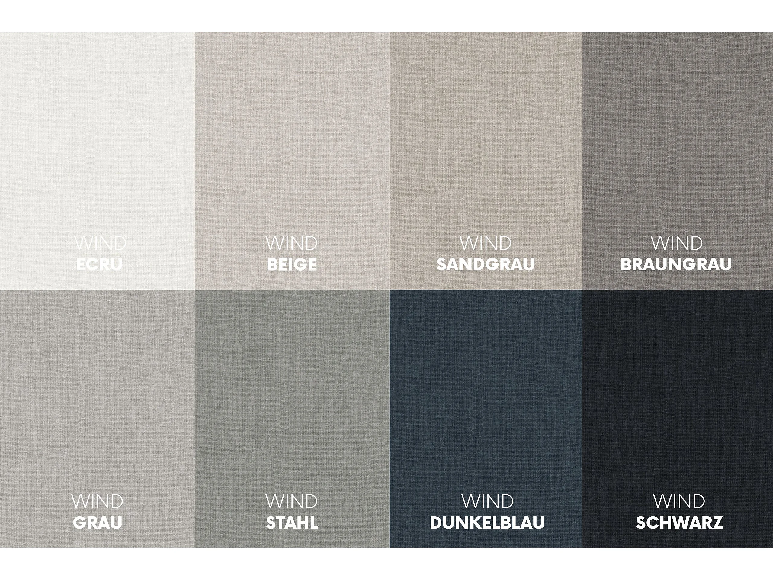 Canapé d'angle convertible avec coffre de rangement MILO U, tissu WIND, acier