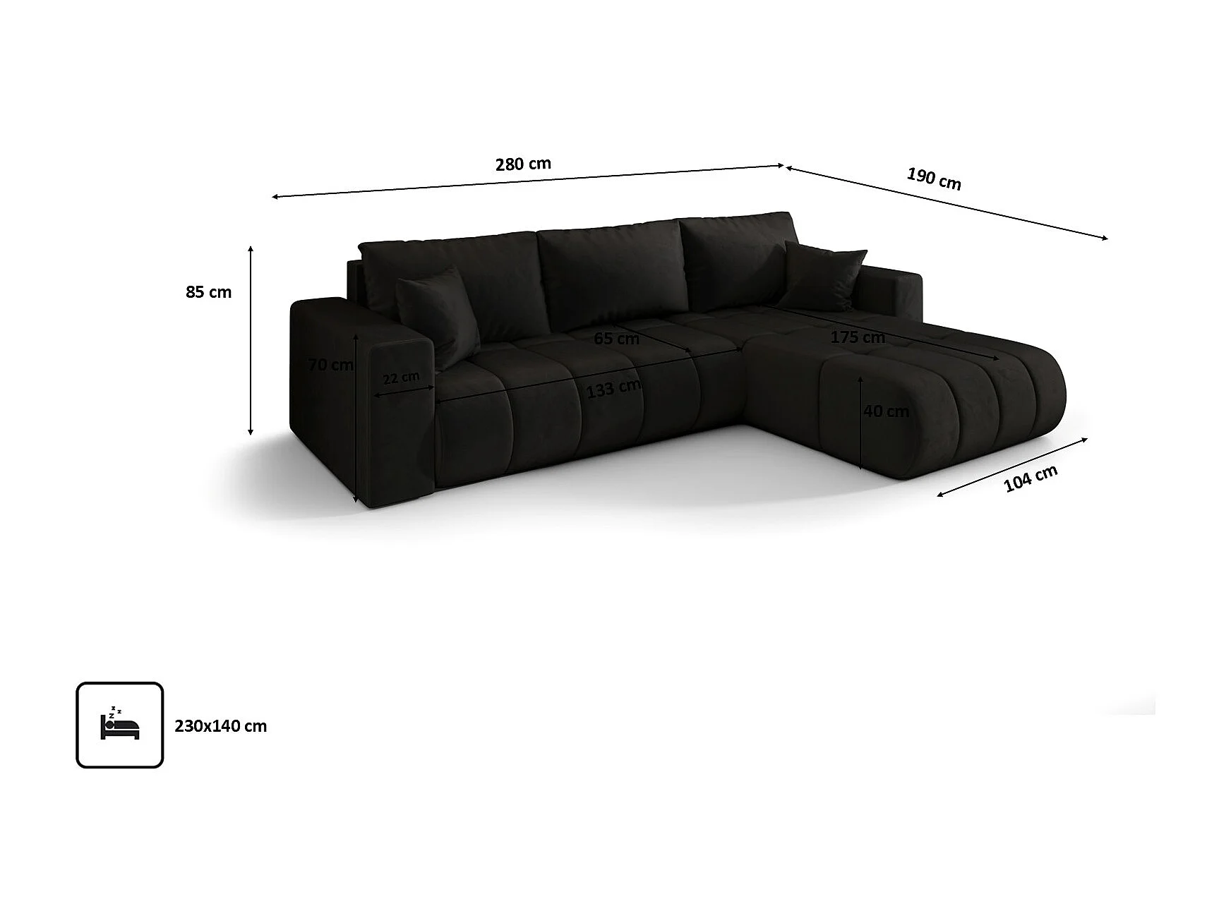 Canapé d'angle convertible avec compartiment de rangement MILO PREMIUM, tissu MONOLITH, anthracite, à droite
