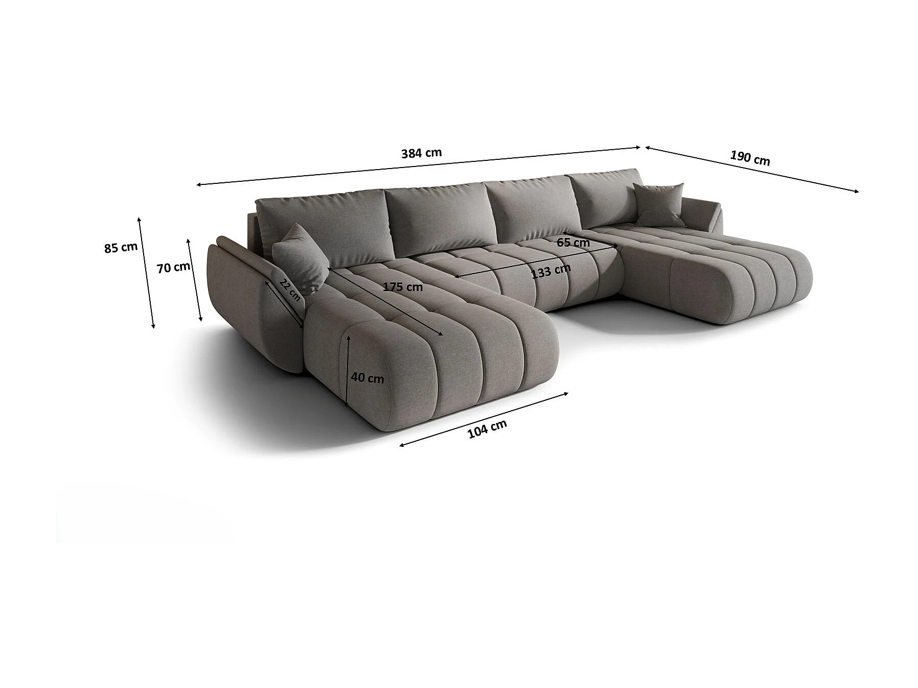 Canapé d'angle convertible avec compartiment de rangement TOKYO U PREMIUM, tissu WIND, gris-brun