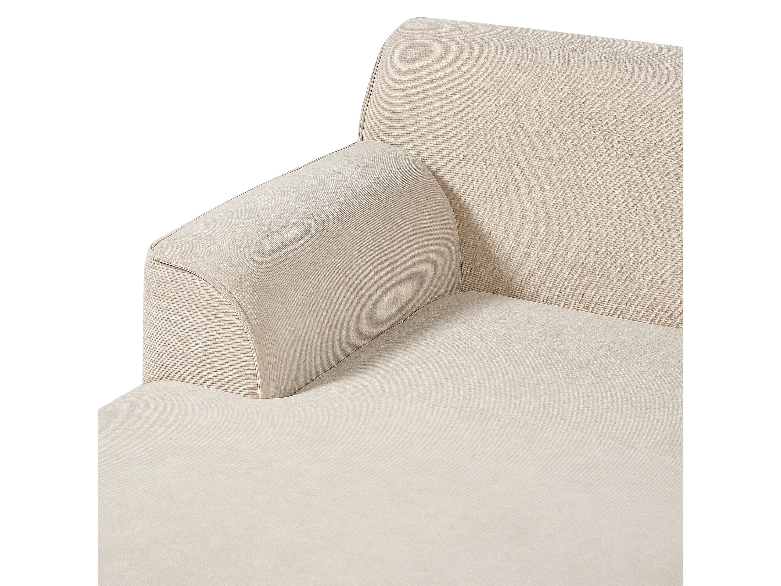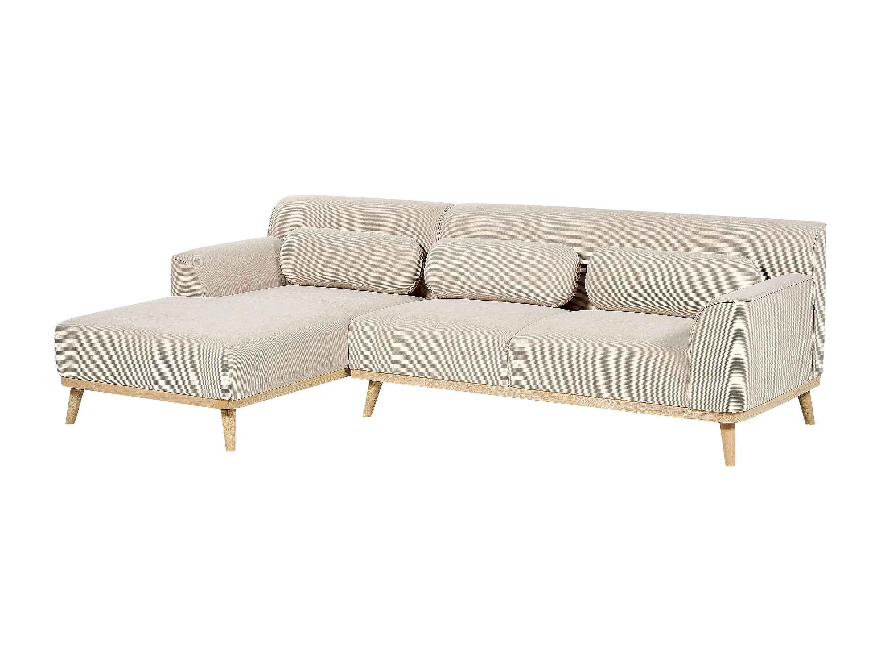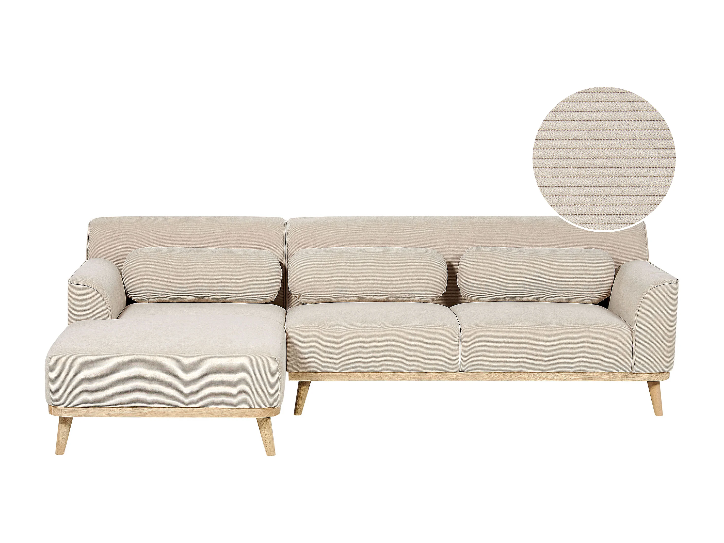 Canapé d'Angle Côté Droit en Velours Côtelé Beige Bois d'Hévéa et d'Eucalyptus 3 Places Simos