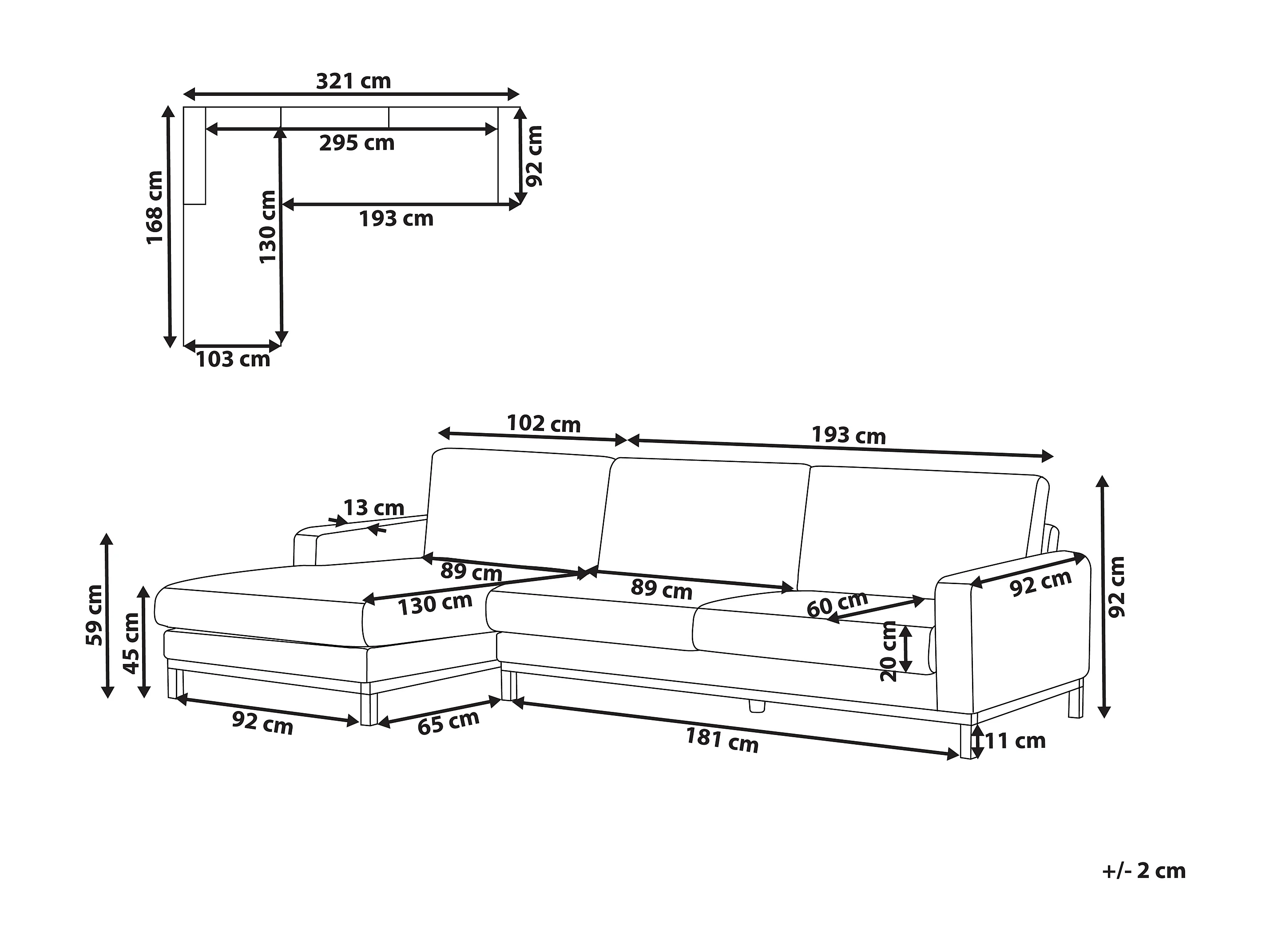 Canapé d'Angle à Gauche en Polyester Rembourré Meuble de Salon Pieds en Acier Accoudoirs et Dossier Réglables Blanc Cassé Ikast