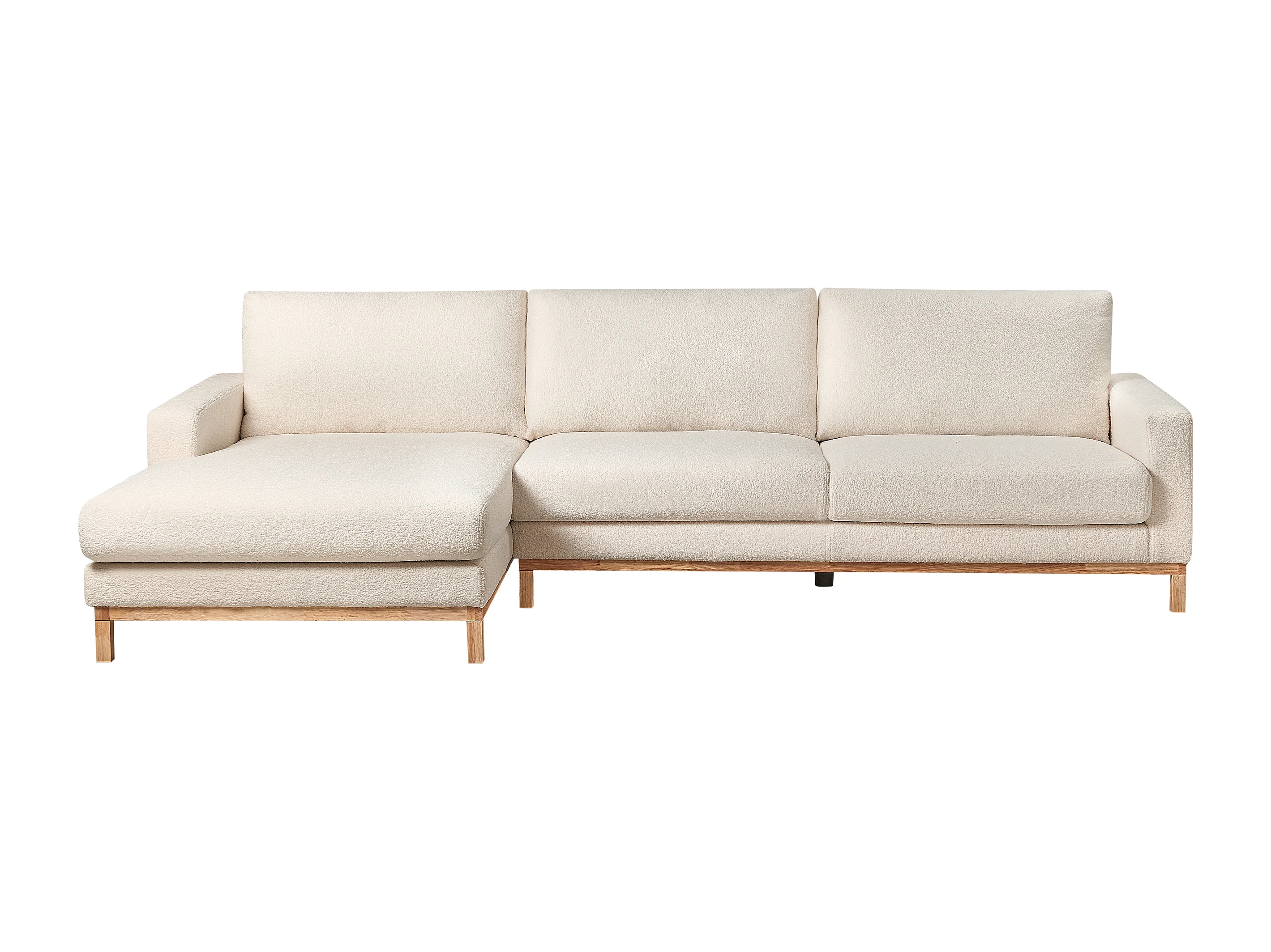 Canapé d'Angle à Droite en Bouclé Pieds en Bois Elégant Beige Clair Siggard