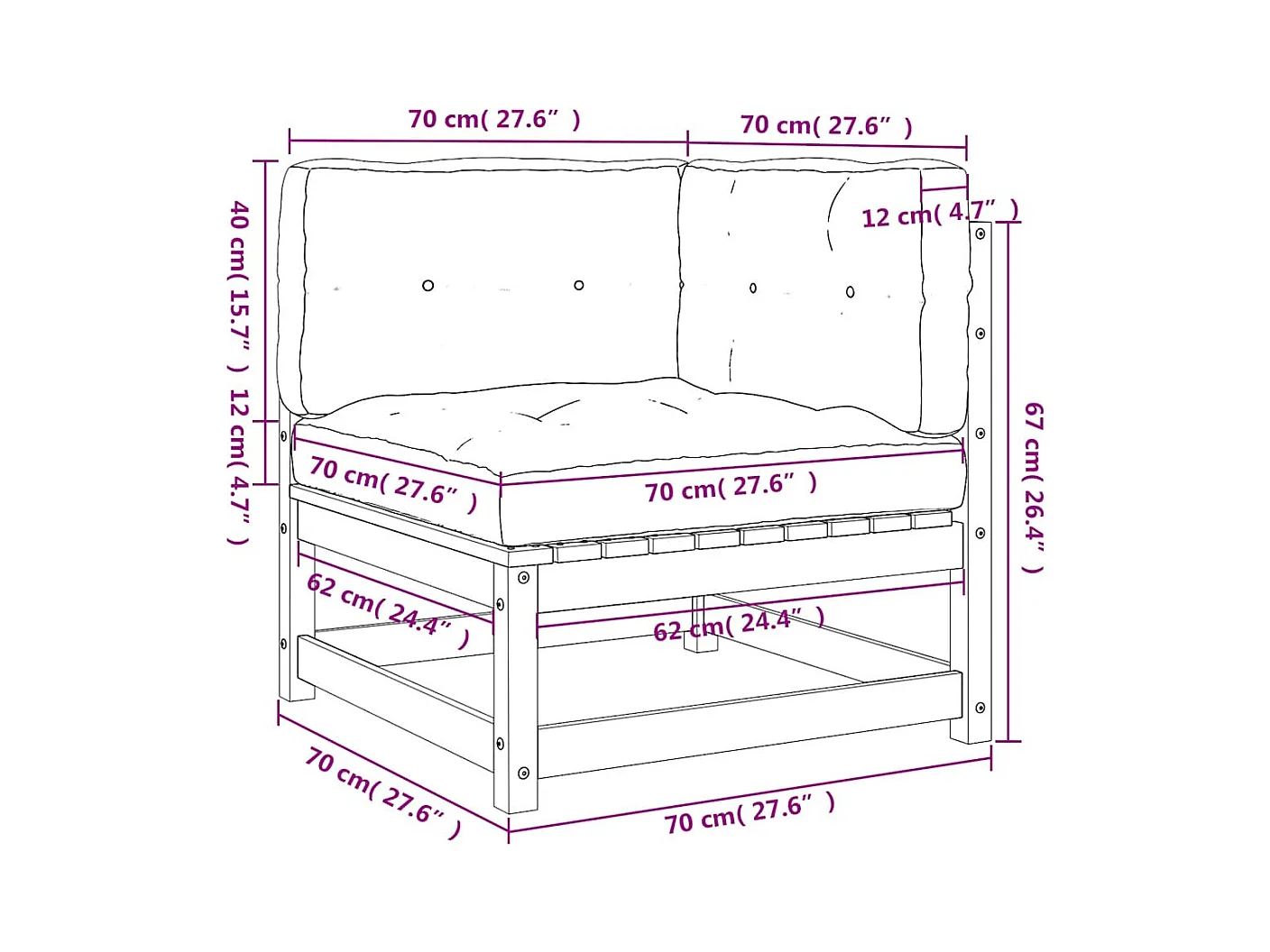 Canapé d'angle de jardin 73x73x78cm bois pin massif