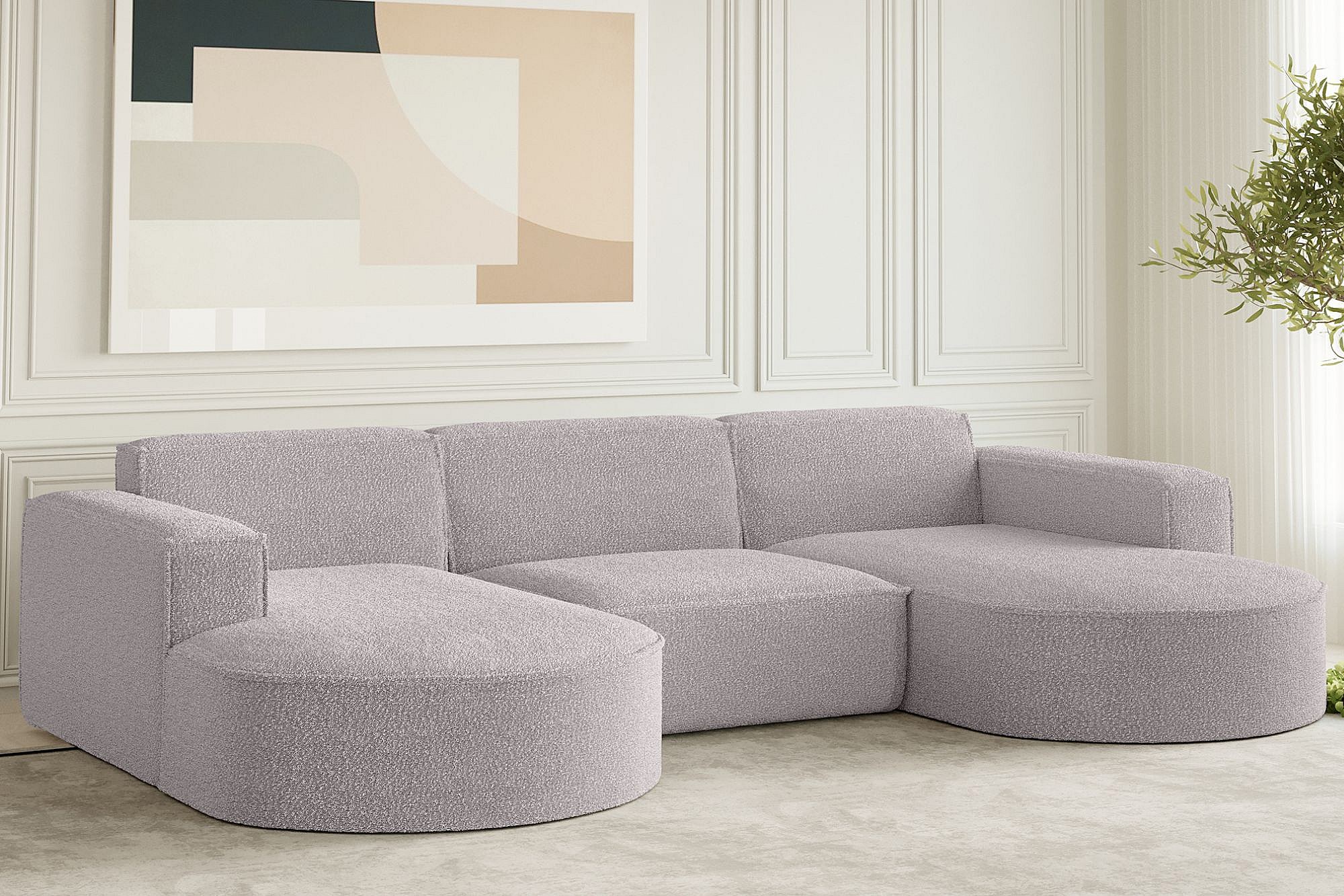 Canapé d'angle design, canapé en U MODENA tissu Loop Pink