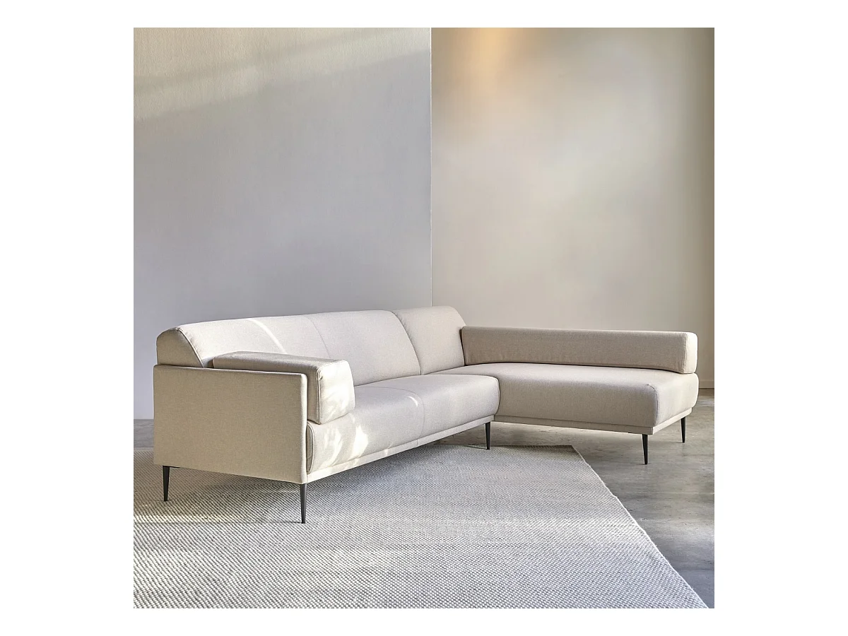 Canapé d'angle droit en tissu écru 270 x 180 cm Finn, 4 places