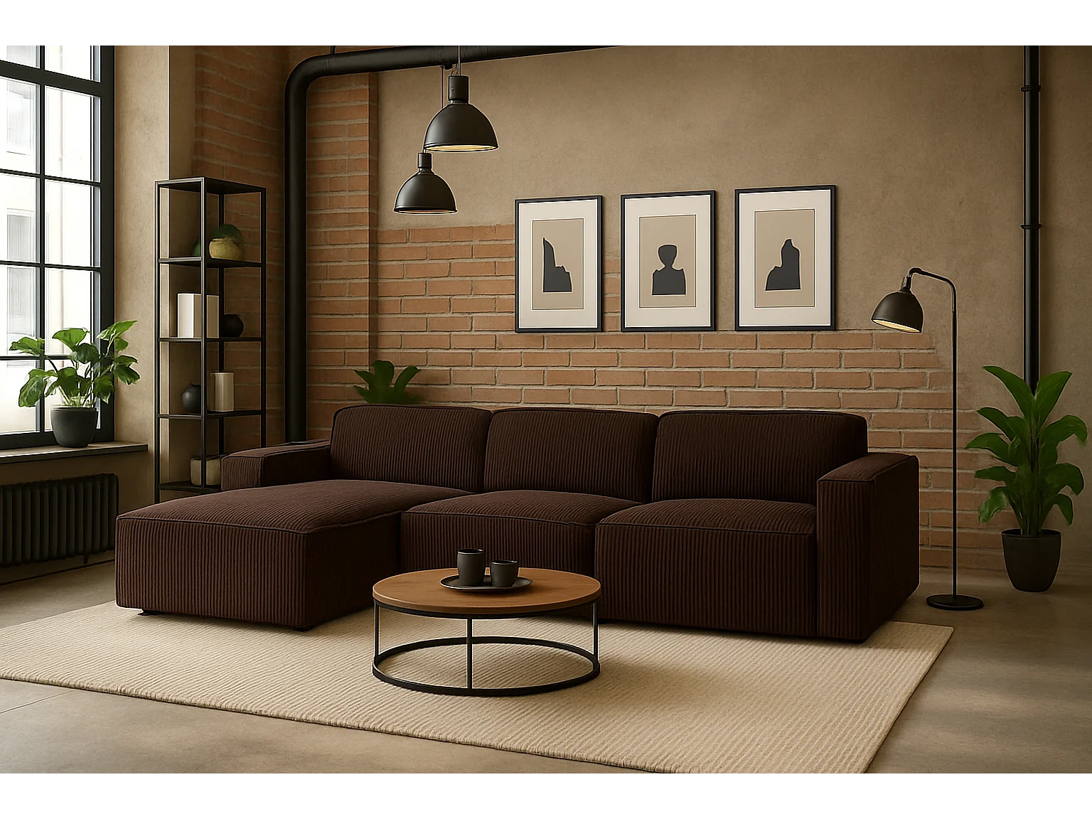 Canapé d'angle en L Cursal, tissu Poso, marron, gauche