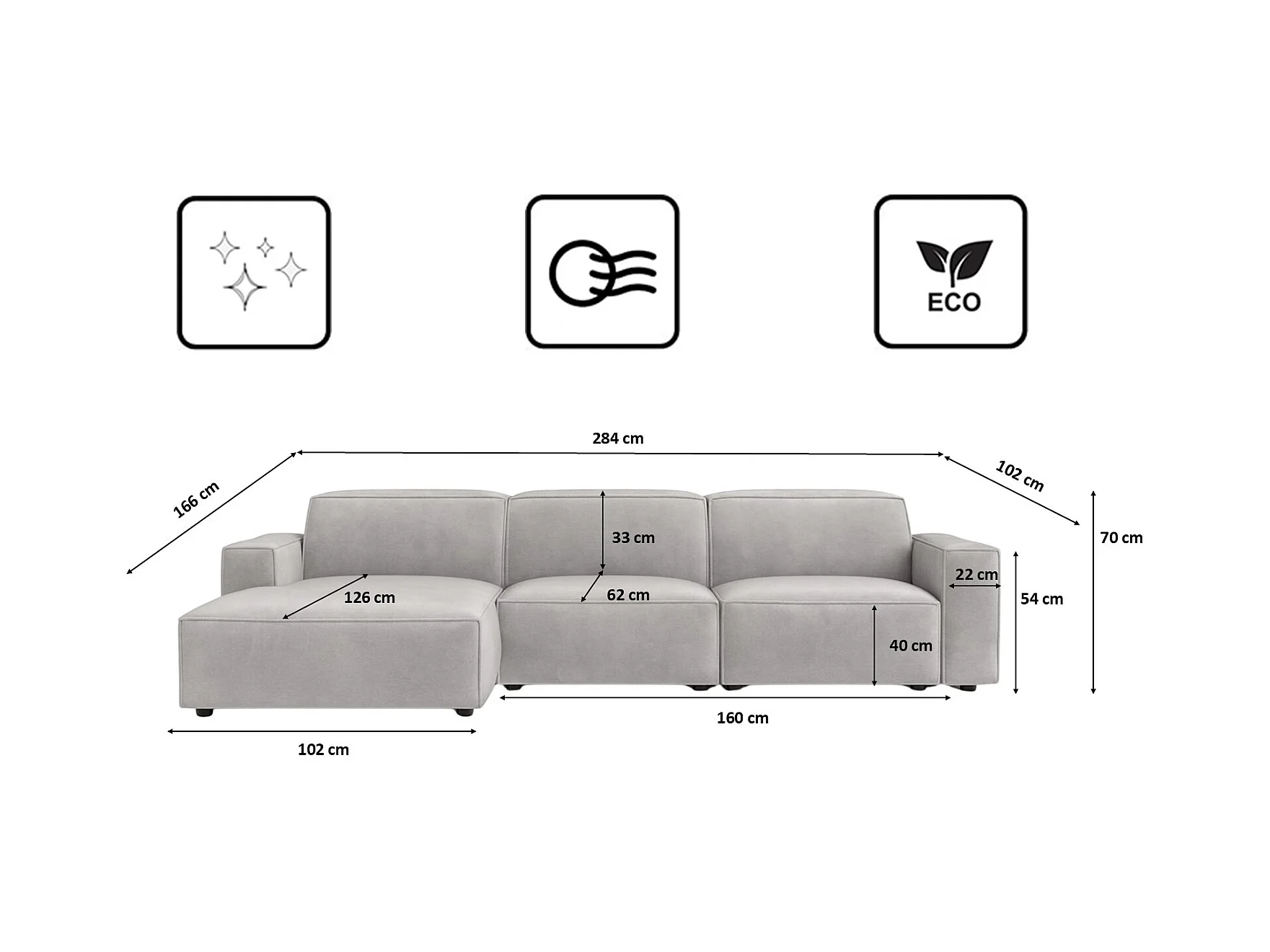 Canapé d'angle en L Cursal, tissu Salvador, gris, gauche