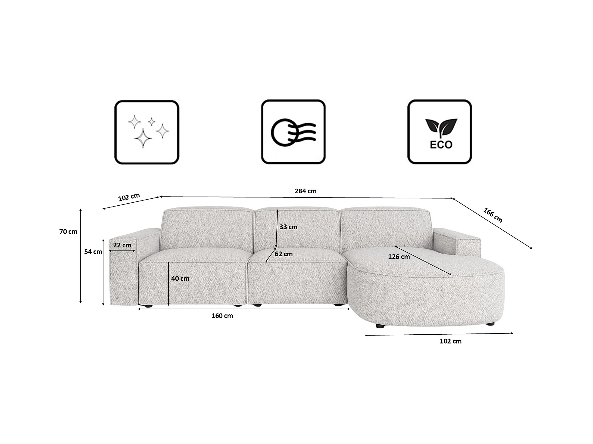 Canapé d'angle L-form Round Cursal, tissu Artico, Nata, gauche