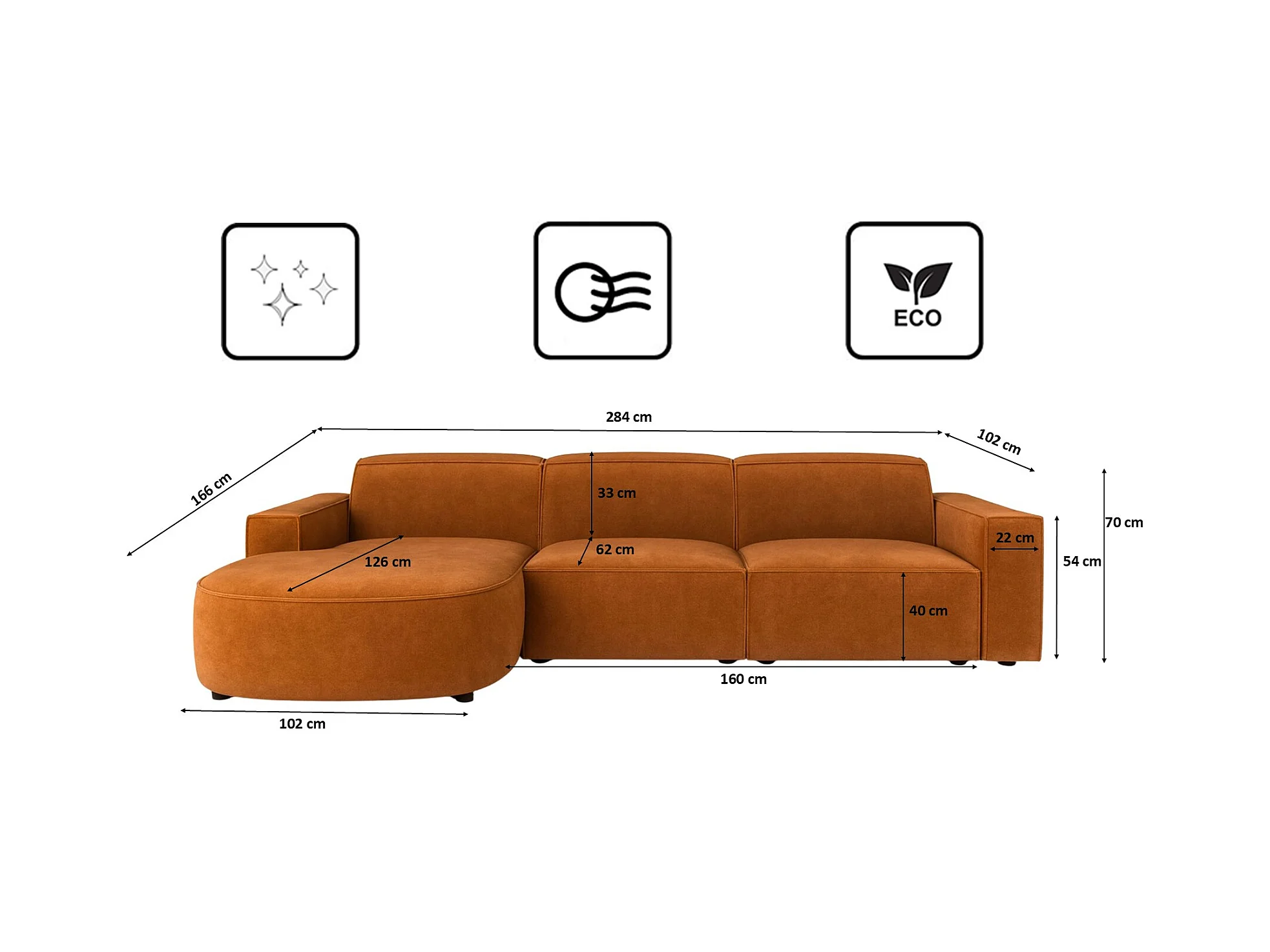 Canapé d'angle en L Round Cursal, tissu Salvador, marron, gauche