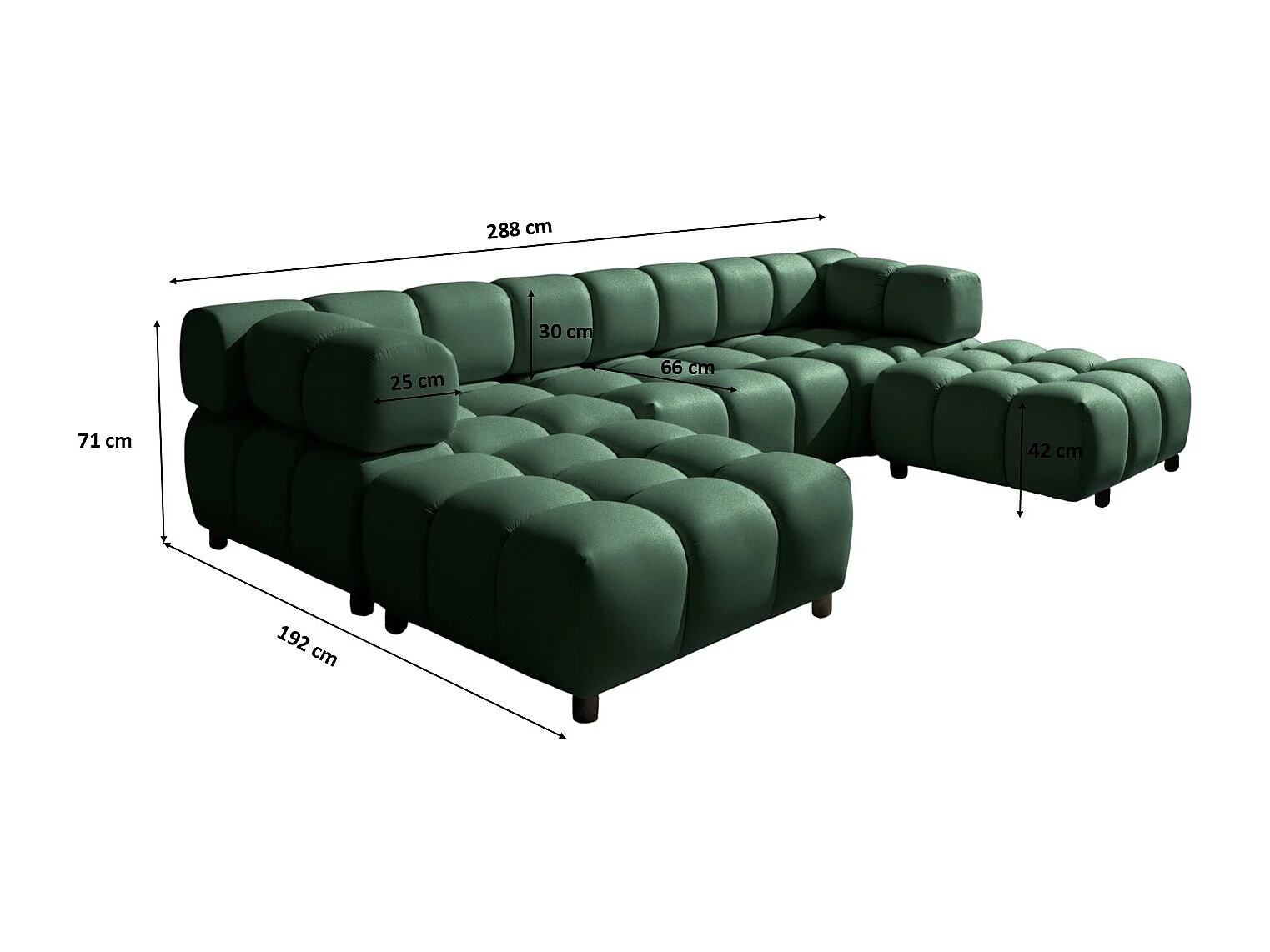 Canapé d'angle en U Bolla, tissu Bluvel, vert