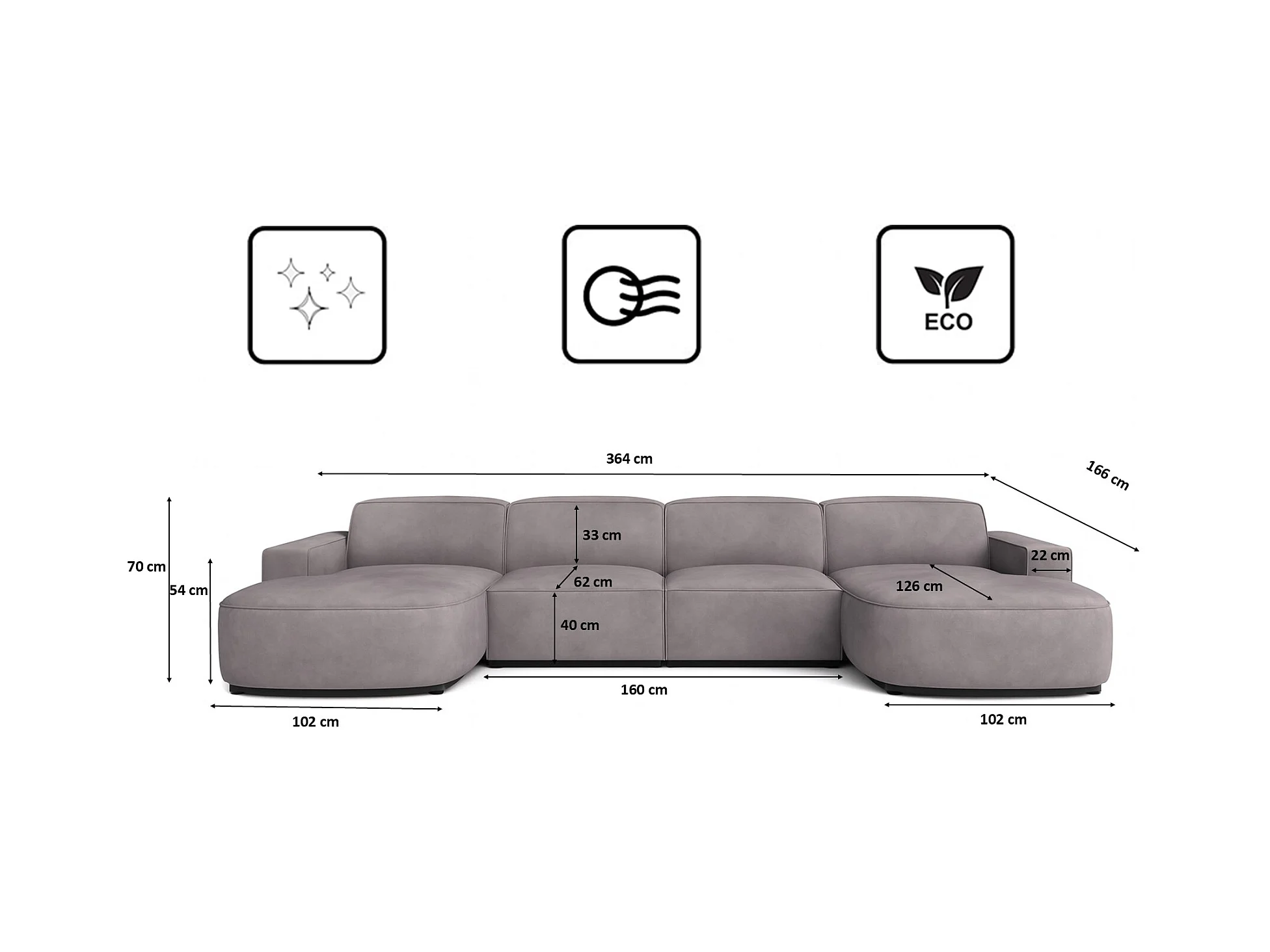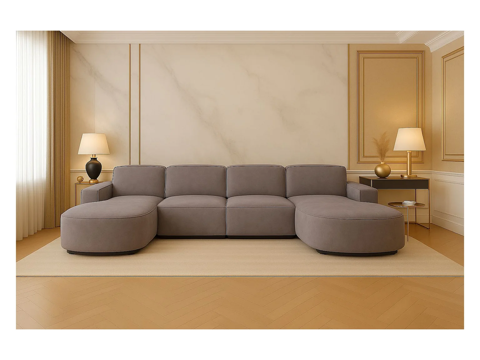 Canapé d'angle en U Round Cursal, tissu Salvador, gris