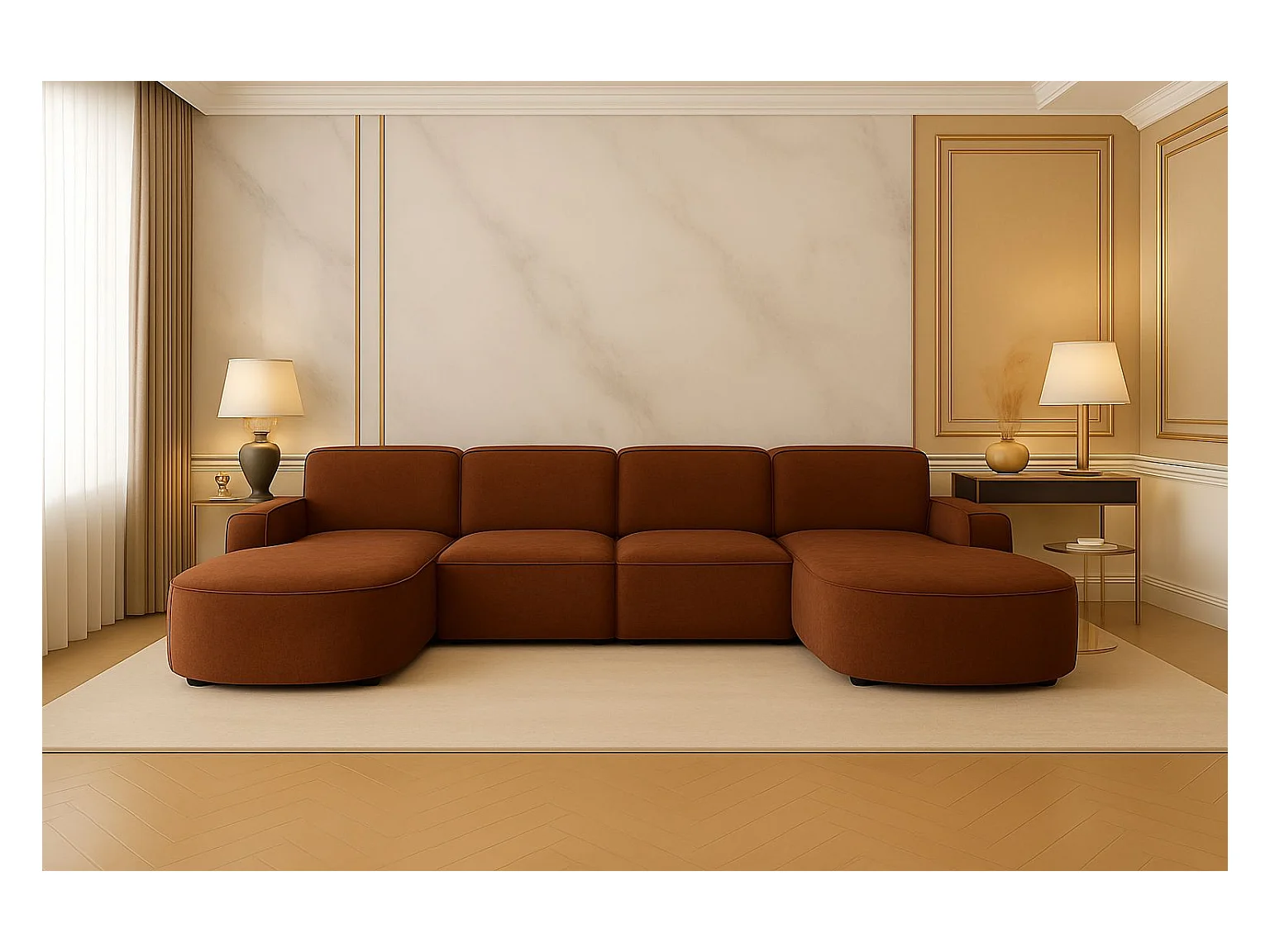 Canapé d'angle en U Round Cursal, tissu Salvador, marron foncé