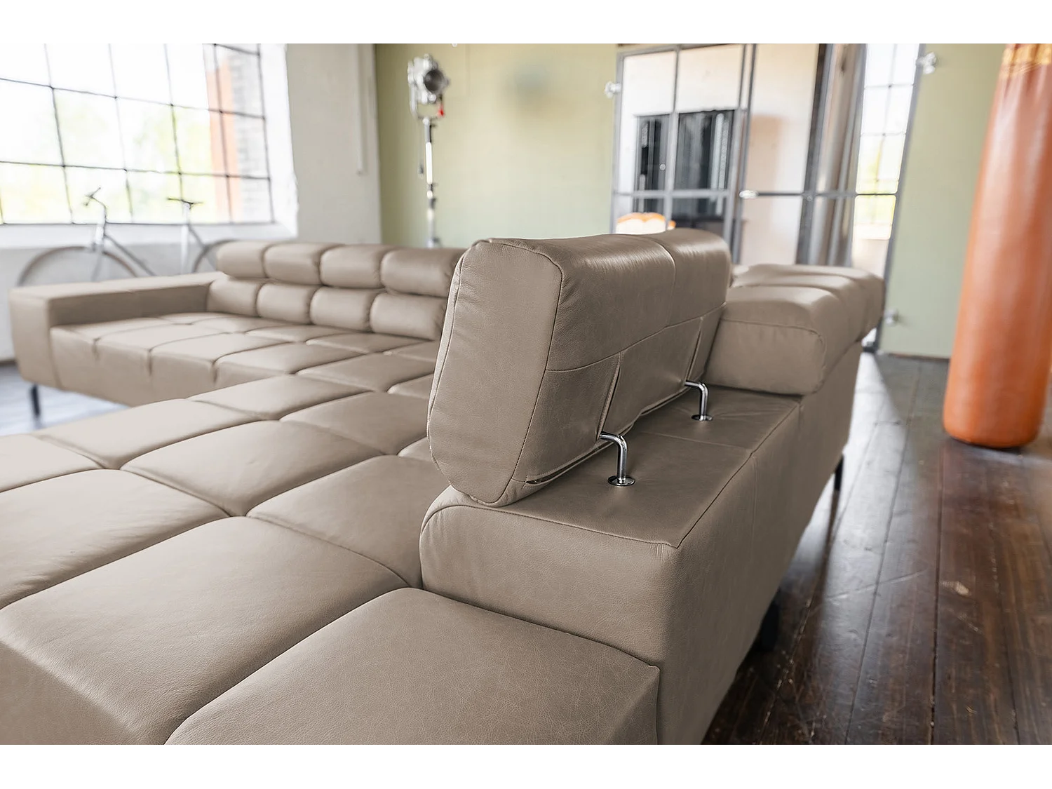 Canapé d'angle - gris clair cuir - NELSON