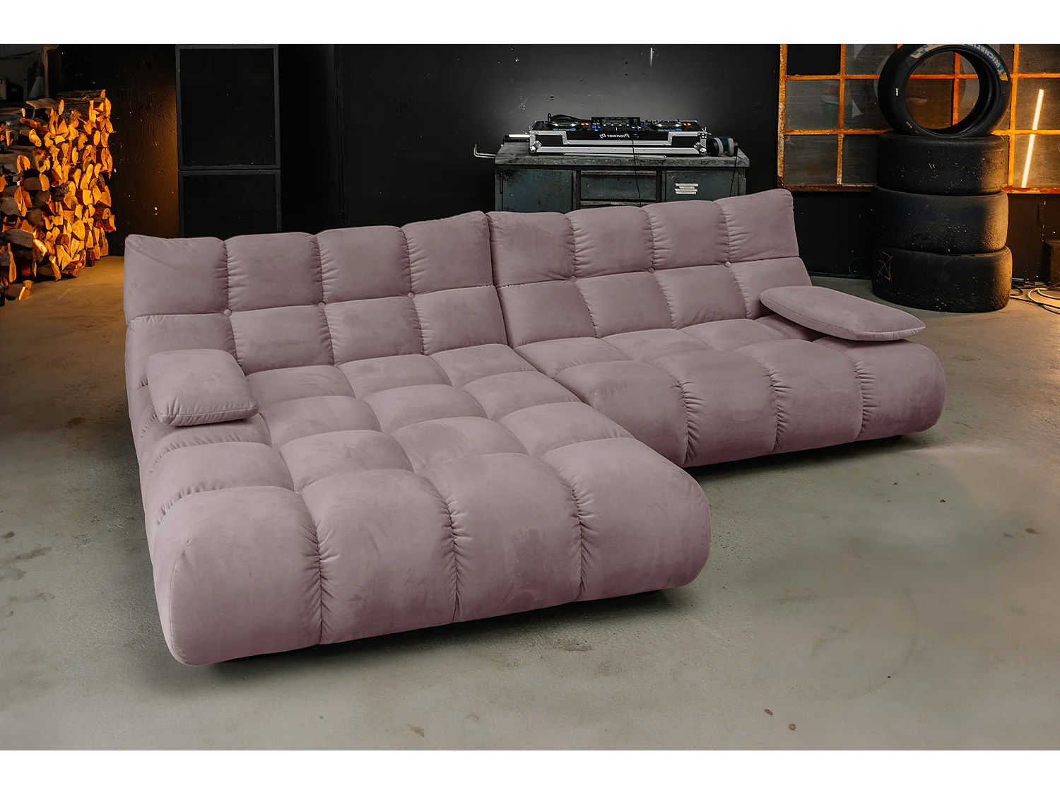 Canapé Moderne en Velours Gris d'Angle Gauche Pieds en Bois d'Eucalyptus Grena
